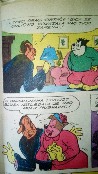 mačkoliki stvor poznat kao Hromi Daba (Pegleg Pete, Big Black Pete…) Ovog puta nećemo posebnu pažnju posvetiti njemu, već jednoj, hm… dami, koja u nekim izdanjima figurira kao njegova partnerka u kriminalnim poduhvatima, i kao životna saputnica – u pitanju je osoba ugl. poznata kao Gica (Trudy van Tubb) koje se verovatno sećaju čitaoci nekadašnjeg Mikijevog almanaha, pošto nije uspela da se održi u nekom dužem nizu i širem spektru nama dostupnih izdanja. Ona je jedno od brojnih obeležja italijanskog doprinosa svetu Diznijevih junaka, i kreacija je crtača Romana Skarpe (prvo pojavljivanje 1960.)