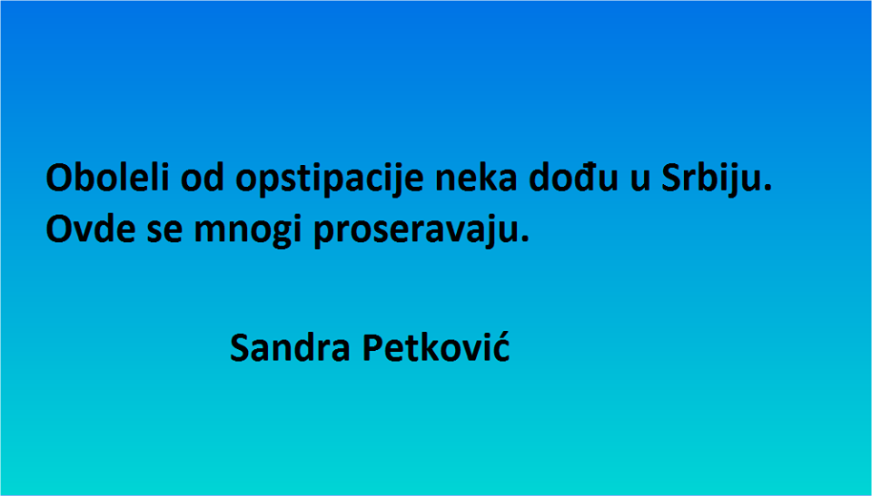 Dnevna doza aforizama okt 30, 2016 Dnevna doza aforizama Dnevna doza aforizama FacebookTwitterEmailViberReddItWhatsAppTelegramPrintPinterestTumblrLinkedinMixVKDiggLINENaver Facebook Prethodni tekstAtletika: Pokazivač u dve ulogeSledeći tekstFotografija dana Sandra PetkovićMeteoropata ne bi trebao da čita istoriju. Vremena su bila svakakva. PROČITAJTE! Knjige Petar Pismestrović: Partija pokera – knjiga karikatura Petar Pismestrović - dec 4, 2025 Satatatira Karikatura dana Petar Pismestrović - avg 13, 2025 Satatatira Karikatura dana Petar Pismestrović - avg 13, 2025 Satatatira Dnevna doza aforizma Peko Laličić - sep 24, 2018 Mesečina Dragana Kiklić: Moja prijateljica Dragana Kiklić - jul 13, 2019 Vesti Međunarodni književni festival – “Kulturom do prijateljstva” UDRUŽENjE BALKANSKIH UMETNIKA - apr 29, 2015 Magazin Razglednica: Vršac Zoran Todorović - jun 6, 2014 Mesečina Peko Laličić: Sunčica je kao Sunce Peko Laličić - mar 20, 2018 Mesečina Lorena Kujek- Putnik Lorena Galeta - okt 3, 2016 Mesečina Spomenka Denda Hamović – Jedna priča Spomenka Denda Hamović - maj 3, 2019 Mesečina Ljiljana Stojadinović: Bizarne noći Ljiljana Stojadinović - avg 21, 2022 Zanimljivosti Da li ste znali: Slepi miševi Marija Pašalić - nov 15, 2014 Magazin Srpski golman Mile Svilar najbolji u Seriji A, Mektominej najbolji igrač lige Zoran Todorović - maj 24, 2025 Magazin A T E LJ E Žike Rankovića : AUTOPORTRET (ulje na platnu 120 x 90) Žika Ranković - sep 22, 2014 Atelje Atelje: Portret Dragana Pašić - feb 27, 2017