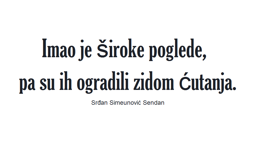 Dnevna doza aforizma jan 9, 2017 Dnevna doza aforizma Dnevna doza aforizma FacebookTwitterEmailViberReddItWhatsAppTelegramPrintPinterestTumblrLinkedinMixVKDiggLINENaver Facebook Prethodni tekstDa ne poverujes: CigareteSledeći tekstNFL: Maestralni Rodžers vodio Pekerse do pobede! Srđan Simeunović SendanU umetnosti dugi niz godina. Svašta video - svašta proživeo, iako se uverio da su slabe nade za neki pomak u ovoj zemlji, i dalje na barikadama. Poezija, proza, satira, muzika i još štošta... PROČITAJTE! Satatatira Karikatura dana Petar Pismestrović - dec 6, 2025 Knjige Petar Pismestrović: Partija pokera – knjiga karikatura Petar Pismestrović - dec 4, 2025 Satatatira Karikatura dana Petar Pismestrović - avg 13, 2025 Otvorena vrata Mozzart uključio Ronalda u borbu za Gavrilov život Zoran Todorović - maj 6, 2021 Satatatira Nepodmitljive priče Dejan Dimitrijević Mita - nov 6, 2016 Zanimljivosti Da li ste znali: „Šah-mat“ Marija Pašalić - jan 24, 2019 Satatatira Aforizam Janka R. Milenkovića Zoran Todorović - jan 19, 2019 Satatatira Dnevna doza aforizma Mitar Đerić - maj 1, 2018 Priključenija Pobeda Novaka u 2. kolu Indijen Velsa Zoran Todorović - mar 14, 2016 Mesečina Sasvim u redu sa tim Igor Cijan - maj 12, 2016 Film Video igre: Shadow of the Tomb Raider Mihailo Todorović - nov 12, 2018 Fotografija Fotografija dana: Kad zraci plešu Ivana Todorović - jun 30, 2018 Vesti Nole obezbedio poziciju broj 1 na kraju sezone, u polufinalu protiv Nišikorija Zoran Todorović - nov 14, 2014 Satatatira Dnevna doza aforizma Nada Karadžić - nov 25, 2016 Zanimljivosti Da li ste znali: Kofein VI Marija Pašalić - jun 24, 2015
