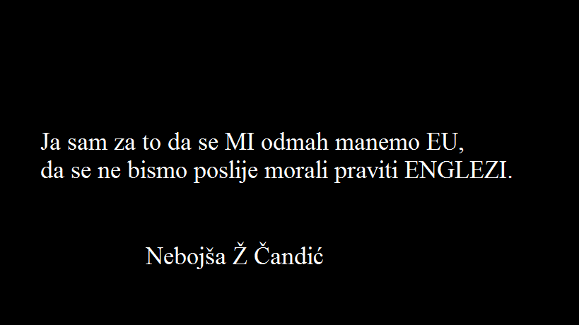 maj 1, 2017 Dnevna doza aforizma FacebookTwitterEmailViberReddItWhatsAppTelegramPrintPinterestTumblrLinkedinMixVKDiggLINENaver Facebook Prethodni tekstDa ne poveruješ: List detelineSledeći tekstNedjelja Popodne – Dž. Š. COVER via Kajsa Unplugged Nebojša ČandićStudent iz Doboja, koji nije zapalio žito. Neko. Homo ludens. Uža specijalnost - igra riječima i kuvanje turske kafe u bosanskom loncu. Slobodnog vremena nema, jer ga provodi glumeći da je zauzet. PROČITAJTE! Satatatira Karikatura dana Petar Pismestrović - dec 6, 2025 Knjige Petar Pismestrović: Partija pokera – knjiga karikatura Petar Pismestrović - dec 4, 2025 Satatatira Karikatura dana Petar Pismestrović - avg 13, 2025 Knjige Враћање добра – истицање врлине Miloš Ignjatović - okt 14, 2018 Pokazivačica Zato što strip Ivan Veljković - sep 25, 2022 Zanimljivosti Za miran san i dobar dan Đorđe Todorović - jan 19, 2017 Magazin CRKVE I MANASTIRI: CRKVA SVETOG MARKA Miladin Mutavdžić - dec 4, 2014 Fotografija Fotografija dana Marko Marković - sep 24, 2017 Muzika Adna Mahić: Improvizacija Adna Mahić - maj 2, 2017 Film Film: A Prayer Before Dawn (2018) Mihailo Todorović - sep 10, 2019 Mesečina Dušan Milijić, Šetnja Zlatnim Pragom ( putopis) Dušan Milijić - maj 7, 2017 Muzika Čajkovski je svoj najlepši marš komponovao U ČAST SRPSKE VOJSKE, a evo i ZBOG ČEGA Zoran Todorović - feb 24, 2018 Strip Markantni detektiv lopov i svađalica… Zoran Todorović - nov 5, 2017 Zanimljivosti Za miran san i dobar dan: Kamiondžije S2E1 Đorđe Todorović - jul 24, 2016 Zanimljivosti Za miran san i dobar dan: Naruto 29. epizoda Đorđe Todorović - jul 7, 2015