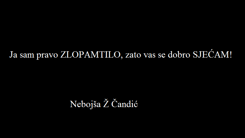 maj 8, 2017 Dnevna doza aforizma FacebookTwitterEmailViberReddItWhatsAppTelegramPrintPinterestTumblrLinkedinMixVKDiggLINENaver Facebook Prethodni tekstSpasimo Teodoru! Upiši 292 i pošalji SMS na 3030!Sledeći tekst10. BELDOCS 2017: Međunarodni festival dokumentarnog filma – Nije još mrak: najava i preporuka Nebojša ČandićStudent iz Doboja, koji nije zapalio žito. Neko. Homo ludens. Uža specijalnost - igra riječima i kuvanje turske kafe u bosanskom loncu. Slobodnog vremena nema, jer ga provodi glumeći da je zauzet. PROČITAJTE! Satatatira Karikatura dana Petar Pismestrović - dec 6, 2025 Knjige Petar Pismestrović: Partija pokera – knjiga karikatura Petar Pismestrović - dec 4, 2025 Satatatira Karikatura dana Petar Pismestrović - avg 13, 2025 Zanimljivosti Da li ste znali: Granica Marija Pašalić - feb 27, 2017 Knjige SAFETA OSMIČIĆ i njena književna dela stvarana u Nizozemskoj UDRUŽENjE BALKANSKIH UMETNIKA - feb 6, 2015 Magazin Vila Avra, Pefkohori – objektivno, da se lakše odlučite ako vam se nađe u ponudi za letovanje Negoslava Stanojević - okt 2, 2018 Mesečina Zoran Todorović – Egerie Zoran Todorović - jun 6, 2016 Magazin N E Ž E NJ A Žika Ranković - jun 10, 2014 Knjige „Ružičasto sunce“ u izdanju Nekazano Zoran Todorović - jul 28, 2022 Atelje Atelje: „Šapat mora“- ulje na platnu; 30x20cm Snežana Kujundžić - maj 26, 2017 Kultura OKTOBARske pozorišne premijere i gostovanja u Beogradu Marko Radojičić - sep 29, 2017 Satatatira Dnevna doza aforizma Vladimir Obrovski - avg 26, 2018 Knjige 6. BFEK 2017: Beogradski festival evropske književnosti: najava i program Marko Radojičić - jun 18, 2017 Priključenija „Uraganke“ donirale Fondaciji Novaka Đokovića 2.000.000 dinara Zoran Todorović - dec 25, 2021 Mesečina Oran i Anja, 52. deo: Zid Zoran Todorović - mar 12, 2025