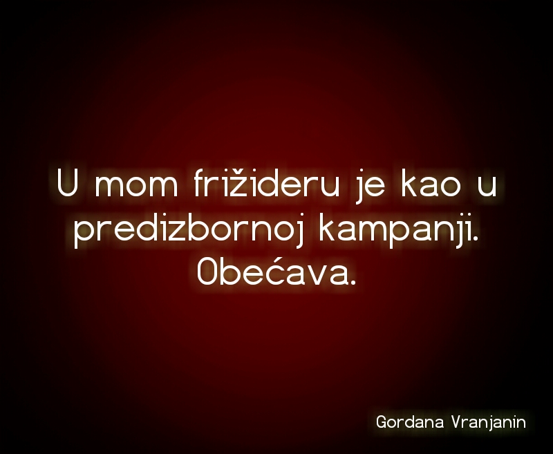 Dnevna doza aforizma maj 25, 2017 Dnevna doza aforizma Dnevna doza aforizma FacebookTwitterEmailViberReddItWhatsAppTelegramPrintPinterestTumblrLinkedinMixVKDiggLINENaver Facebook Prethodni tekstSatirična pričaSledeći tekstDa li ste znali: Okinošima Gordana VranjaninRođena 15. 09.1976.godine u Vukovaru, Hrvatska. Inspirisana (ne)pravdom, pohlepom, (ne)sposobnošću naših političara i ostalim životnim bajkama, počela da piše aforizme. Majka jedne Danijele i jedne Natalije. PROČITAJTE! Knjige Petar Pismestrović: Partija pokera – knjiga karikatura Petar Pismestrović - dec 4, 2025 Satatatira Karikatura dana Petar Pismestrović - avg 13, 2025 Satatatira Karikatura dana Petar Pismestrović - avg 13, 2025 Satatatira Volio BIH Živko Vujić Deana Sailović - sep 9, 2017 Magazin Nikola Tesla o srpskoj poeziji, kulturi i istoriji: Teslina pevanija Zmaja Jovana Jovanovića Zoran Todorović - jul 15, 2023 Magazin PRETPONOĆNO LAMENTIRANJE Žika Ranković - nov 3, 2014 Otvorena vrata Jezičke nedoumice: Ovo sigurno niste znali Zoran Todorović - feb 10, 2021 Satatatira Aforizmi Raša Papeš Deana Sailović - sep 10, 2017 Zanimljivosti Da li ste znali: Zelena Marija Pašalić - okt 10, 2014 Mesečina Tode Nikoletić: Slikar Tode Nikoletić - jun 16, 2019 Mesečina Nebo sa pet zvedica: Njene žene Zoran Todorović - jun 19, 2025 Atelje Atelje Dobrosava Boba Živkovića Dobrosav Bob Živković - feb 5, 2019 Otvorena vrata Propaganda savremenog doba: Oblici propagande Nemanja Andrić - nov 11, 2015 Otvorena vrata Dečija nedelja: Maskembal u OŠ“ Radoje Domanović“ , Kragujevac Bojana Pudar - okt 11, 2015 Vesti Novak ekspresno do prve pobede u Londonu! Zoran Todorović - nov 11, 2014