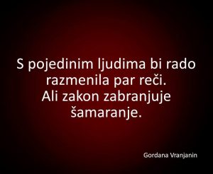 Dnevna doza aforizma jun 1, 2017 Dnevna doza aforizma Dnevna doza aforizma FacebookTwitterEmailViberReddItWhatsAppTelegramPrintPinterestTumblrLinkedinMixVKDiggLINENaver Facebook Prethodni tekstZašto Vaš tinejdžer neće da priča sa Vama?Sledeći tekstDa li ste znali: Nadbubrežna žlezda Gordana VranjaninRođena 15. 09.1976.godine u Vukovaru, Hrvatska. Inspirisana (ne)pravdom, pohlepom, (ne)sposobnošću naših političara i ostalim životnim bajkama, počela da piše aforizme. Majka jedne Danijele i jedne Natalije. PROČITAJTE! Satatatira Karikatura dana Petar Pismestrović - dec 6, 2025 Knjige Petar Pismestrović: Partija pokera – knjiga karikatura Petar Pismestrović - dec 4, 2025 Satatatira Karikatura dana Petar Pismestrović - avg 13, 2025 Otvorena vrata Zašto je održivost ključan deo našeg rada? Zoran Todorović - jun 18, 2019 Zanimljivosti Ginisov rekord: Najveća kuća na drvetu Bojana Pudar - mar 7, 2014 Otvorena vrata Novak preokretom do četvrtfinala u Kataru Zoran Todorović - jan 2, 2019 Satatatira Karikatura dana: Kornelije Bata Kovač (1942-2022) Slaviša Ševrt - sep 25, 2022 Satatatira Karikatura dana: Koalicija Zoran Todorović - avg 31, 2016 Mesečina Voliš, jer u tebi niču izdanci nečije duše Marina Milosavljević - okt 15, 2016 Zanimljivosti Laku noć Jovanka Ignjatović - jul 11, 2014 Satatatira Dnevna doza aforizma Deana Sailović - jul 6, 2017 Otvorena vrata Pisana priprema za čas iz matematike u trećem razredu Jovanka Ignjatović - maj 27, 2014 Otvorena vrata Jezičke nedoumice: vi bi ili vi biste Zoran Todorović - jul 18, 2019 Fotografija Nemanja Sekulić: Create Star Trails From Just One Photo in Photoshop Zoran Todorović - okt 11, 2018 Satatatira Dnevna doza aforizma Dragana Pašić - okt 27, 2017