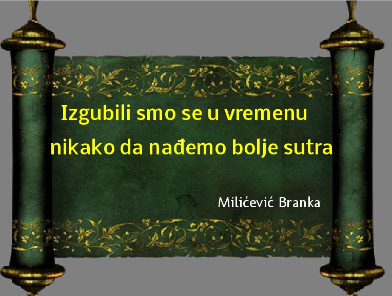 Aforizam Branka Milićević nov 7, 2018 Dnevna doza aforizma ključne rečidnevna doza aforizmanađemosutravremenu FacebookTwitterEmailViberReddItWhatsAppTelegramPrintPinterestTumblrLinkedinMixVKDiggLINENaver Facebook Prethodni tekstAKK: Novi programi u KutkuSledeći tekstNajiščekivaniji film ove godine: Scene iz filma “Kralj Petar Prvi” ostaviće vas bez daha Branka MilićevićŽivim i radim u Kragujevcu. Volim i pišem poeziju. Zadnjih godinu dana sam se pronašla i u pisanju aforizama. "Što je bolja tehnologija to je više zakržljalih mozgova". PROČITAJTE! Satatatira Karikatura dana Petar Pismestrović - dec 6, 2025 Knjige Petar Pismestrović: Partija pokera – knjiga karikatura Petar Pismestrović - dec 4, 2025 Satatatira Karikatura dana Petar Pismestrović - avg 13, 2025 Zanimljivosti Da li ste znali: Las Vegas Marija Pašalić - mar 25, 2017 Otvorena vrata Likovni rad dana: Kolaž od fotografija Jovanka Ignjatović - jul 11, 2017 Atelje Međunarodni strip konkurs u okviru II STRIP FESTA! Zoran Todorović - nov 9, 2018 Satatatira Dnevna doza aforizma. Predrag - Peđa Đakonović - avg 14, 2016 Atelje Atelje Luke Cakića Luka Cakić - okt 19, 2017 Otvorena vrata Popularne škole imaju više đaka Zoran Todorović - avg 31, 2017 Kultura Obnovljen Ruski spomenik u Opornici Miloš Ignjatović - maj 5, 2021 Zanimljivosti Vic nedelje: Zabuna Đorđe Todorović - jul 31, 2016 Muzika ROKI advokat i vrhunski menadžer Miloš Ignjatović - feb 3, 2023 Pokazivač pokazuje Nešto lepo – Dragan Musić (Izviđački odred „Čiča Janko“ – Perlez) Helena Himel - maj 18, 2018 Otvorena vrata Princeza Katarina i Lajflajn Čikago opremili dečju sobu u predškolskoj ustanovi u Kraljevu Zoran Todorović - apr 29, 2025 Mesečina Spomenka Denda Hamović: Susret Spomenka Denda Hamović - jun 2, 2017