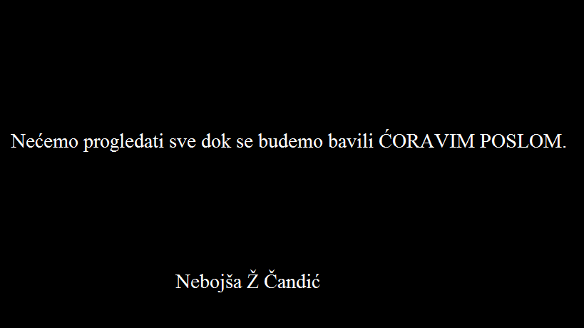 avg 21, 2017 Dnevna doza aforizma FacebookTwitterEmailViberReddItWhatsAppTelegramPrintPinterestTumblrLinkedinMixVKDiggLINENaver Facebook Prethodni tekstDa ne poveruješ: VitezSledeći tekstLikovni rad dana: Moj omiljeni lik iz crtanog filma Nebojša ČandićStudent iz Doboja, koji nije zapalio žito. Neko. Homo ludens. Uža specijalnost - igra riječima i kuvanje turske kafe u bosanskom loncu. Slobodnog vremena nema, jer ga provodi glumeći da je zauzet. PROČITAJTE! Satatatira Karikatura dana Petar Pismestrović - dec 6, 2025 Knjige Petar Pismestrović: Partija pokera – knjiga karikatura Petar Pismestrović - dec 4, 2025 Satatatira Karikatura dana Petar Pismestrović - avg 13, 2025 Zanimljivosti Vic dana: Roda Đorđe Todorović - jul 21, 2018 Obrazovanje Dve decenije srpske škole u Briselu – roditelji objasnili šta je bilo ključno za pokretanje i opstanak škole Zoran Todorović - jun 4, 2025 Kultura 5. NOVI TVRĐAVA TEATAR 2018: međunarodni pozorišni festival u Čortanovcina Marko Radojičić - jun 19, 2018 Mesečina (Ne)pokretanje Mišo Koprivica - apr 29, 2014 Kultura Marko Spirić: Intervju sa Gordanom Gocom Stojičević Marko Spirić - jan 27, 2017 Satatatira Dnevna doza aforizma Peko Laličić - apr 24, 2017 Zanimljivosti HIČKOK je pravio najbolje horore na svetu, a čitavog života se PLAŠIO samo DVE STVARI Zoran Todorović - maj 12, 2019 Knjige Prikazi Svetlane Janković Mitić: Život je kao reka… Svetlana Mitić - okt 31, 2024 Otvorena vrata Tabla: Lakomi mečići Zoran Todorović - dec 22, 2014 Otvorena vrata Standardi kompetenicija direktora ustanova obrazovanja i vaspitanja Jovanka Ignjatović - jul 3, 2014 Zanimljivosti Vic dana: Glasovi Zoran Todorović - jul 12, 2014 Magazin Pogled s Crvenog Čota: Iskušenje Slobodan Osmokrović - dec 14, 2015