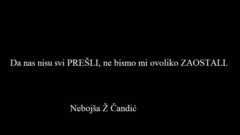 avg 28, 2017 Dnevna doza aforizma FacebookTwitterEmailViberReddItWhatsAppTelegramPrintPinterestTumblrLinkedinMixVKDiggLINENaver Facebook Prethodni tekstKarikatura dana: Luj XVISledeći tekstDa li znate tradiciju? Evo zašto je SVETA GORA ZABRANJENA ZA ŽENE i koje Srpkinje su je IPAK POSETILE Nebojša ČandićStudent iz Doboja, koji nije zapalio žito. Neko. Homo ludens. Uža specijalnost - igra riječima i kuvanje turske kafe u bosanskom loncu. Slobodnog vremena nema, jer ga provodi glumeći da je zauzet. PROČITAJTE! Knjige Petar Pismestrović: Partija pokera – knjiga karikatura Petar Pismestrović - dec 4, 2025 Satatatira Karikatura dana Petar Pismestrović - avg 13, 2025 Satatatira Karikatura dana Petar Pismestrović - avg 13, 2025 Otvorena vrata Likovni rad dana: Šumska kraljica Jovanka Ignjatović - dec 4, 2015 Muzika Pišonja i Žuga – Zabranjeno Pušenje /cover by mmcela/ Miša mmcela Acoustic - sep 1, 2017 Zanimljivosti Vic nedelje: Gluma Đorđe Todorović - dec 7, 2014 Otvorena vrata Likovni rad dana: Morske životinje Sunčica Miščević - nov 19, 2014 Zanimljivosti Misao dana Prvoslavka Marković - sep 15, 2018 Vesti Ускршњи сабор у еко парку Илина вода / Крагујевац Miloš Ignjatović - apr 14, 2015 Vesti Ластин реп донео медаљу Miloš Ignjatović - feb 26, 2019 Magazin Pogled s Crvenog Čota: Oskudica i lagodnost Slobodan Osmokrović - jan 20, 2017 Mesečina Bojana Stupar: Pelin i med Bojana Stupar - avg 18, 2017 Mesečina Anđela Turukalo: Ljubičasto nebo Anđela Turukalo - maj 1, 2017 Mesečina Stefan Simić – Pratim Stefan Simić - jun 10, 2016 Zanimljivosti Mozgalica nedelje (br. 15): Raspored sedenja Zoran Todorović - jun 9, 2014