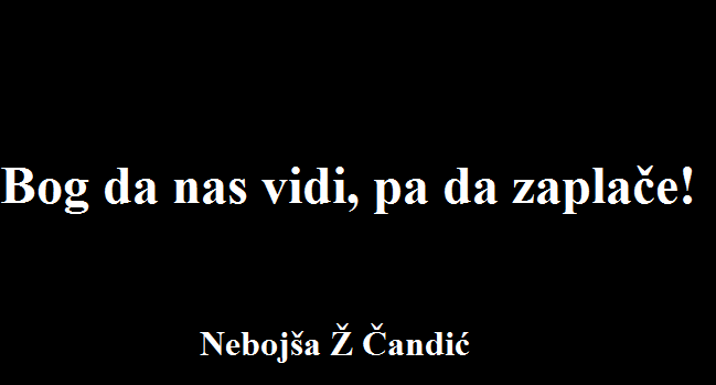 sep 25, 2017 Dnevna doza aforizma FacebookTwitterEmailViberReddItWhatsAppTelegramPrintPinterestTumblrLinkedinMixVKDiggLINENaver Facebook Prethodni tekstDa ne poveruješ: Aleksandar ĐorđevićSledeći tekstSprečio je najveći rat u istoriji, a o njegovoj smrti mesecima nije izvestio niko! Nebojša ČandićStudent iz Doboja, koji nije zapalio žito. Neko. Homo ludens. Uža specijalnost - igra riječima i kuvanje turske kafe u bosanskom loncu. Slobodnog vremena nema, jer ga provodi glumeći da je zauzet. PROČITAJTE! Knjige Petar Pismestrović: Partija pokera – knjiga karikatura Petar Pismestrović - dec 4, 2025 Satatatira Karikatura dana Petar Pismestrović - avg 13, 2025 Satatatira Karikatura dana Petar Pismestrović - avg 13, 2025 Otvorena vrata Od 1. januara Rusija ulaže milijarde u podršku natalitetu Zoran Todorović - jan 6, 2018 Mesečina Vanja Parača: Neonsko središte Vanja Parača - jul 8, 2025 Satatatira Karikatura dana: Massimo Savić Slaviša Ševrt - mar 2, 2018 Satatatira Karikatura dana Darko Drljević - jun 4, 2018 Knjige Objavljen četvrti roman Zorice Tijanić Zoran Todorović - dec 15, 2017 Zanimljivosti Da li ste znali: Brisači Marija Pašalić - jul 11, 2016 Knjige Princezi Katarini dodeljena Medalja časti „Nadežda Petrović” za humanitarni rad Zoran Todorović - mar 10, 2022 Mesečina Nebo sa pet zvezdica: Užas i strava al` istina prava Zoran Todorović - jun 23, 2025 Mesečina Fotografija dana Marko Marković - jan 18, 2015 Knjige Dani izraelske književnosti u Valjevu Uroš Selenić - jun 1, 2016 Otvorena vrata Dijamant družina Jovanka Ignjatović - apr 29, 2014 Satatatira Dnevna doza aforizma Jane Atanasov - okt 5, 2018
