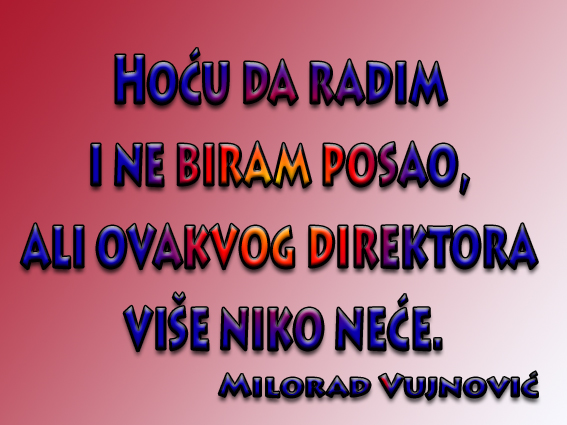 Dnevna doza aforizma nov 1, 2017 Dnevna doza aforizma Dnevna doza aforizma FacebookTwitterEmailViberReddItWhatsAppTelegramPrintPinterestTumblrLinkedinMixVKDiggLINENaver Facebook Prethodni tekstOŠ „Radoje Domanović Kragujevac: Blok čas integrisane nastaveSledeći tekstFotografija dana: Zalazak Milorad VujnovićRođen u Novom Sadu 1963. Voli vino, zbog istine i istinski voli ženski rod. Aforizme počeo da piše sa 18 pa napravio pauzu od tridesetak godina, taman dovoljno da sazri. PROČITAJTE! Satatatira Karikatura dana Petar Pismestrović - dec 6, 2025 Knjige Petar Pismestrović: Partija pokera – knjiga karikatura Petar Pismestrović - dec 4, 2025 Satatatira Karikatura dana Petar Pismestrović - avg 13, 2025 Zanimljivosti “Borba prestola” u srednjevekovnoj Srbiji Zoran Todorović - apr 3, 2019 Zanimljivosti Misao dana Prvoslavka Marković - jan 18, 2018 Mesečina DO GOLE KOŽE Jelena Milovanović - apr 17, 2015 Učenici i studenti Rodoljublje danas OŠ "Kralj Aleksandar I" Gornji Milanovac - dec 5, 2014 Otvorena vrata Program matematičkih takmičenja Prvoslavka Marković - okt 8, 2015 Magazin Pogled s Crvenog Čota: Reč-dve o biciklu… Slobodan Osmokrović - apr 5, 2016 Otvorena vrata Koje uslove direktori moraju da ispune da bi dobili licencu Zoran Todorović - sep 6, 2018 Zanimljivosti Za miran san i dobar dan Đorđe Todorović - jun 5, 2015 Atelje Atelje Ane Perišić Mr Ana Perišić - nov 27, 2017 Otvorena vrata Novak zaustavio Monfisa, u četvrtfinalu Pariza protiv Mareja Zoran Todorović - okt 31, 2014 Strip Bringing Up Father („Porodica Tarana“) Mišo Koprivica - apr 8, 2014 Zanimljivosti Da li ste znali: Kiseli kupus Marija Pašalić - jan 26, 2017