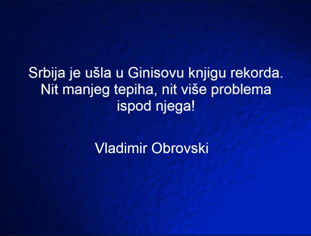 dec 31, 2017 Dnevna doza aforizma FacebookTwitterEmailViberReddItWhatsAppTelegramPrintPinterestTumblrLinkedinMixVKDiggLINENaver Facebook Prethodni tekstMargineSledeći tekstDa li ste znali: Nervoza Vladimir ObrovskiČovek sam koga je život uveo u kolo aforizma. Sada pokušavam da naučim korake... PROČITAJTE! Satatatira Karikatura dana Petar Pismestrović - dec 6, 2025 Knjige Petar Pismestrović: Partija pokera – knjiga karikatura Petar Pismestrović - dec 4, 2025 Satatatira Karikatura dana Petar Pismestrović - avg 13, 2025 Otvorena vrata Laku noć Zoran Todorović - apr 30, 2014 Zanimljivosti Za miran san i dobar dan Đorđe Todorović - jan 11, 2017 Zanimljivosti Ginisovi rekordi: Walter Hudson Zoran Todorović - maj 6, 2016 Muzika Alesso – Heroes (we could be) ft. Tove Lo Zoran Todorović - maj 16, 2015 Mesečina Sara Jekić: Jedna jedina reč Sara Jekić - jul 24, 2016 Magazin жика ранковић: о к т о б а р с к а Žika Ranković - okt 21, 2016 Satatatira Dnevna doza aforizma: Goran Ivanković Goran Ivanković - apr 25, 2019 Zanimljivosti Na današnji dan: 7. avgust Zoran Todorović - avg 7, 2018 Zanimljivosti Za miran san i dobar dan: Pipi duga čarapa 21. epizoda Đorđe Todorović - avg 24, 2017 Knjige KONKURS ZA PЕSME I PRIČE DECE, I ZA DECU Helena Himel - avg 3, 2017 Knjige Konkurs za neafirmisane pesnike Recitatorske družine Među nama Među nama - jan 6, 2017 Pokazivač pokazuje INTERVJU: Talal Elzik – dete Palestine, građanin Srbije Mladen Ranković - apr 18, 2015