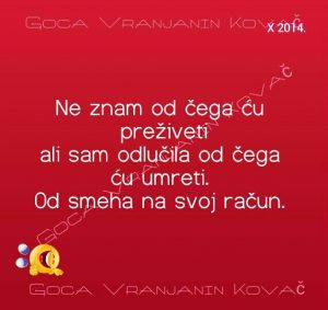 Dnevna doza aforizma jan 18, 2018 Dnevna doza aforizma Dnevna doza aforizma FacebookTwitterEmailViberReddItWhatsAppTelegramPrintPinterestTumblrLinkedinMixVKDiggLINENaver Facebook Prethodni tekstVic dana: Oštećenje sluhaSledeći tekstDa li ste znali: Aklufobija Gordana VranjaninRođena 15. 09.1976.godine u Vukovaru, Hrvatska. Inspirisana (ne)pravdom, pohlepom, (ne)sposobnošću naših političara i ostalim životnim bajkama, počela da piše aforizme. Majka jedne Danijele i jedne Natalije. PROČITAJTE! Satatatira Karikatura dana Petar Pismestrović - dec 6, 2025 Knjige Petar Pismestrović: Partija pokera – knjiga karikatura Petar Pismestrović - dec 4, 2025 Satatatira Karikatura dana Petar Pismestrović - avg 13, 2025 Satatatira Made IN Makedonija Made in Macedonia - avg 8, 2017 Atelje Шумадијски атеље: Миливоје Штуловић –„Сећање на Леонарда” Miloš Ignjatović - okt 30, 2015 Zanimljivosti Lekcija o skromnosti patrijarha Pavla Zoran Todorović - feb 23, 2018 Knjige Ivan Despotović: Nova versifikacija Dejan Petrović Kobajaši - maj 30, 2021 Magazin Novogodišnje obraćanje predsednika Olimpijskog komiteta Srbije Božidara Maljkovića Zoran Todorović - dec 31, 2024 Fotografija Fotografija dana: Igra Senki Jovan Pavlović - maj 10, 2017 Knjige Nemanja Zivlak: Kočićeve reči u današnjem svetu- Ideja koja ne umire Neda Gavrić - avg 6, 2025 Zanimljivosti Da li ste znali: Gmizavci Marija Pašalić - feb 24, 2017 Satatatira Dnevna doza aforizma Branka Milićević - avg 29, 2018 Fotografija Fotografija dana Zoran Todorović - jun 15, 2023 Zanimljivosti DA LI STE ZNALI : IPAK SE OKREĆE Bojana Pudar - mar 11, 2014 Satatatira Izložba karikatura „Utisak“ Laza Sredanovića Zoran Todorović - maj 13, 2019