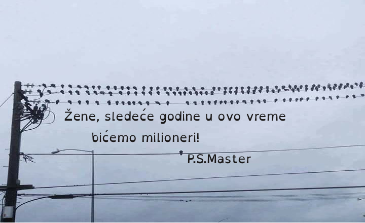 Slika: Neznani junak sa Fejsbuka maj 1, 2018 Dnevna doza aforizma Slika: Neznani junak sa Fejsbuka ključne rečimilionerižene FacebookTwitterEmailViberReddItWhatsAppTelegramPrintPinterestTumblrLinkedinMixVKDiggLINENaver Facebook Prethodni tekstMisao danaSledeći tekstFotografija dana: Ušće Monika Kovač - P.S. MasterRođena pod sretnim zvezdama tamo neke 1979. godine. Uspešno u(ne)srećuje ljude sa svojim humorom u Starom Bečeju, a zahvaljujući internetu sada i šire. Igrom slučaja nesuđeni etimolog, a igrom reči suđeni aforističar. PROČITAJTE! Knjige Petar Pismestrović: Partija pokera – knjiga karikatura Petar Pismestrović - dec 4, 2025 Satatatira Karikatura dana Petar Pismestrović - avg 13, 2025 Satatatira Karikatura dana Petar Pismestrović - avg 13, 2025 Kultura Belgrade Beer Fest 2018. Zoran Todorović - avg 14, 2018 Satatatira Karikatura dana Milenko Kosanović - sep 18, 2018 Fotografija Fotografija dana Goran Protić - jul 7, 2018 Atelje JAZZ Fest – Dom omladine – Beograd Milivoj Kostić Kole - jul 30, 2018 Film „Sitroen“ napravio kočiju za Asteriksa i Obeliksa Zoran Todorović - dec 20, 2022 Satatatira Skrenimo na pravi put Đorđe Otašević Deana Sailović - sep 22, 2016 Fotografija Fotografija dana: Čovek iz senke Jovan Pavlović - jul 26, 2017 Mesečina Vjera Garović: A jutros Vjera Garović - dec 27, 2020 Otvorena vrata Likovni rad dana: Likovni znaci Jovanka Ignjatović - okt 17, 2016 Zanimljivosti Da li ste znali: Oči na leđima Bojana Pudar - apr 21, 2014 Muzika Vlatko Stefanovski sa vojnim orkestrom u Sava centru! Zoran Todorović - mar 18, 2017 Otvorena vrata Savindan u domu za nezbrinutu decu „Mladost“ u Kragujevcu OŠ " 21. OKTOBAR" KRAGUJEVAC - feb 25, 2015