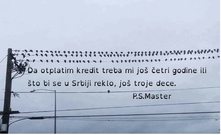 Foto: Labud N. Lončar maj 22, 2018 Dnevna doza aforizma Foto: Neznani junak sa fejsa ključne rečikredittreće dete FacebookTwitterEmailViberReddItWhatsAppTelegramPrintPinterestTumblrLinkedinMixVKDiggLINENaver Facebook Prethodni tekstMisao danaSledeći tekstFotografija dana: Stidljivo Monika Kovač - P.S. MasterRođena pod sretnim zvezdama tamo neke 1979. godine. Uspešno u(ne)srećuje ljude sa svojim humorom u Starom Bečeju, a zahvaljujući internetu sada i šire. Igrom slučaja nesuđeni etimolog, a igrom reči suđeni aforističar. PROČITAJTE! Satatatira Karikatura dana Petar Pismestrović - dec 6, 2025 Knjige Petar Pismestrović: Partija pokera – knjiga karikatura Petar Pismestrović - dec 4, 2025 Satatatira Karikatura dana Petar Pismestrović - avg 13, 2025 Satatatira Dnevna doza aforizma Gordana Vranjanin - mar 16, 2017 Fotografija Fotografija dana: Lutka Zoran Todorović - dec 12, 2015 Atelje Mermerna glava Hermesa iz 3. veka p.n.e. pronađena ispod pločnika u Atini Zoran Todorović - nov 17, 2020 Mesečina Spomenka Denda Hamović: DRUGA Spomenka Denda Hamović - jan 1, 2016 Otvorena vrata Najstarija gimnazija Vesna Antonijević - maj 25, 2014 Priključenija I ove godine O.U.R. Pub u gostionici Belgrade Beer Festa Julijana Vincan - avg 15, 2018 Zanimljivosti Za miran san i dobar dan: Zmajeva kugla 37. epizoda Đorđe Todorović - mar 22, 2016 Priključenija Dušan Mandić proglašen za najboljeg vaterpolistu Evrope Zoran Todorović - jan 17, 2025 Mesečina Ljiljana Stojadinović: Čuvari starih stihova Ljiljana Stojadinović - sep 24, 2022 Otvorena vrata Posebna iznenađenja za najmlađe u Prirodnjačkom centru Srbije Zoran Todorović - jul 12, 2018 Fotografija Fotografija dana Marko Marković - sep 13, 2015 Magazin Moj Beograd Miroslav Lj. Ranković - jun 5, 2016