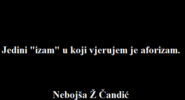 jul 9, 2018 Dnevna doza aforizma FacebookTwitterEmailViberReddItWhatsAppTelegramPrintPinterestTumblrLinkedinMixVKDiggLINENaver Facebook Prethodni tekstKarikatura danaSledeći tekstU dolini Velike Morave raste najdeblje drvo u Srbiji Nebojša ČandićStudent iz Doboja, koji nije zapalio žito. Neko. Homo ludens. Uža specijalnost - igra riječima i kuvanje turske kafe u bosanskom loncu. Slobodnog vremena nema, jer ga provodi glumeći da je zauzet. PROČITAJTE! Satatatira Karikatura dana Petar Pismestrović - dec 6, 2025 Knjige Petar Pismestrović: Partija pokera – knjiga karikatura Petar Pismestrović - dec 4, 2025 Satatatira Karikatura dana Petar Pismestrović - avg 13, 2025 Priključenija Počele prijave za podsticajna sredstva za samozapošljavanje i zapošljavanje osoba sa invaliditetom u Kragujevcu Zoran Todorović - avg 28, 2024 Mesečina Neda Gavrić: Nije mrak, nego su ti oči zatvorene Neda Gavrić - okt 6, 2022 Obrazovanje Akcija podele hrane za najugroženije građane Marko Spirić - okt 20, 2022 Zanimljivosti Da li ste znali: Nijagara i kora od banane Zoran Todorović - jul 25, 2014 Otvorena vrata Sremski Karlovci postaju univerzitetski centar Srbije Zoran Todorović - okt 25, 2018 Film Smartphone igra: Dungeon Hunter 5 Nikola Simić - jul 7, 2015 Magazin žika ranković: pobednici Žika Ranković - sep 10, 2017 Mesečina Saša Mićković: Svetlosna ljubav Mićković Saša - mar 14, 2018 Zanimljivosti Da li ste znali: Boćanje Marija Pašalić - sep 25, 2014 Mesečina Marina Milosavljević: Ti, moj zenit duše Marina Milosavljević - feb 16, 2019 Fotografija Fotografija dana Ivana Todorović - maj 4, 2019 Muzika Bajaga i Instruktori, Vranjković, KKN, Bjesovi i Orthodox Celts na Arsenal festu 2025 Zoran Todorović - mar 5, 2025