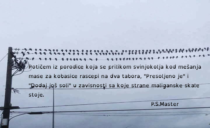 Neznani junak sa Fejsbuka maj 1, 2019 Dnevna doza aforizma: Monika Kovačević P.S.Master ključne rečiaforizamdnevna doza aforizmaMonika Kovačević FacebookTwitterEmailViberReddItWhatsAppTelegramPrintPinterestTumblrLinkedinMixVKDiggLINENaver Facebook Prethodni tekstKarikatura danaSledeći tekstGastronomska karta Srbije – svaki kraj ima svoj specijalitet, a evo i koji ima najoriginalniju kuhinju Monika Kovač - P.S. MasterRođena pod sretnim zvezdama tamo neke 1979. godine. Uspešno u(ne)srećuje ljude sa svojim humorom u Starom Bečeju, a zahvaljujući internetu sada i šire. Igrom slučaja nesuđeni etimolog, a igrom reči suđeni aforističar. PROČITAJTE! Knjige Petar Pismestrović: Partija pokera – knjiga karikatura Petar Pismestrović - dec 4, 2025 Satatatira Karikatura dana Petar Pismestrović - avg 13, 2025 Satatatira Karikatura dana Petar Pismestrović - avg 13, 2025 Otvorena vrata BESPLATNI UDŽBENICI 2015/2016. GODINE – najčešća pitanja i odgovori Sunčica Miščević - mar 10, 2015 Atelje Milutin i prijatelji u Pedagoškom muzeju u Beogradu Labud Lončar - maj 14, 2025 Satatatira Karikatura dana Nikola Dragaš - sep 21, 2017 Mesečina Marina Milosavljević: Tvoja ljubav je hrana duši Marina Milosavljević - okt 27, 2018 Satatatira Dnevna doza aforizma Monika Kovač - P.S. Master - jul 10, 2018 Otvorena vrata Novak preokretom do četvrtfinala u Kataru Zoran Todorović - jan 2, 2019 Kultura LETNJE (regionalne i beogradske) pozorišne premijere Marko Radojičić - jul 1, 2017 Otvorena vrata Belgrade Youth Fair 2018: Najveći sajam za mlade u regionu, 26. i 27. aprila u Beogradu Zoran Todorović - mar 25, 2018 Film Arrow S1 Epizoda 1 Nikola Simić - apr 21, 2015 Satatatira Dnevna doza aforizma Monika Kovač - P.S. Master - apr 10, 2018 Fotografija Fotografija dana: Svjetlost Labud Lončar - jul 8, 2016 Atelje Atelje Sabahudina Muranovića Murana Sabahudin Muranović-Muran - jan 18, 2018