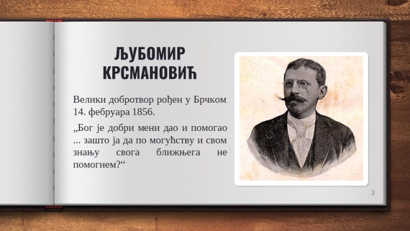SPKD „Prosvjeta“ u Tuzli traje 117 godina. Mnogo je dobrih ljudi podržavalo i podsticalo rad Društva. Svojim dobrim djelima pomogli su mladim studentima da završe školovanje, osnivali i pomagali osnivanje biblioteka, svojim ličnim uticajem i materijalnom potporom dali su mnogo za kulturni i prosvjetni napredak svoga naroda. Želeći da njihova imena sačuvaju od zaborava, Društvo je izabralo 14. februar, dan na koji je prije 165 godina rođen Ljubomira Krsmanovića, čovjeka kome su mnogi izražavali blagodarnost za ono što su postali. Zbog poznatih razloga završna svečanost je pomjerena za juni.