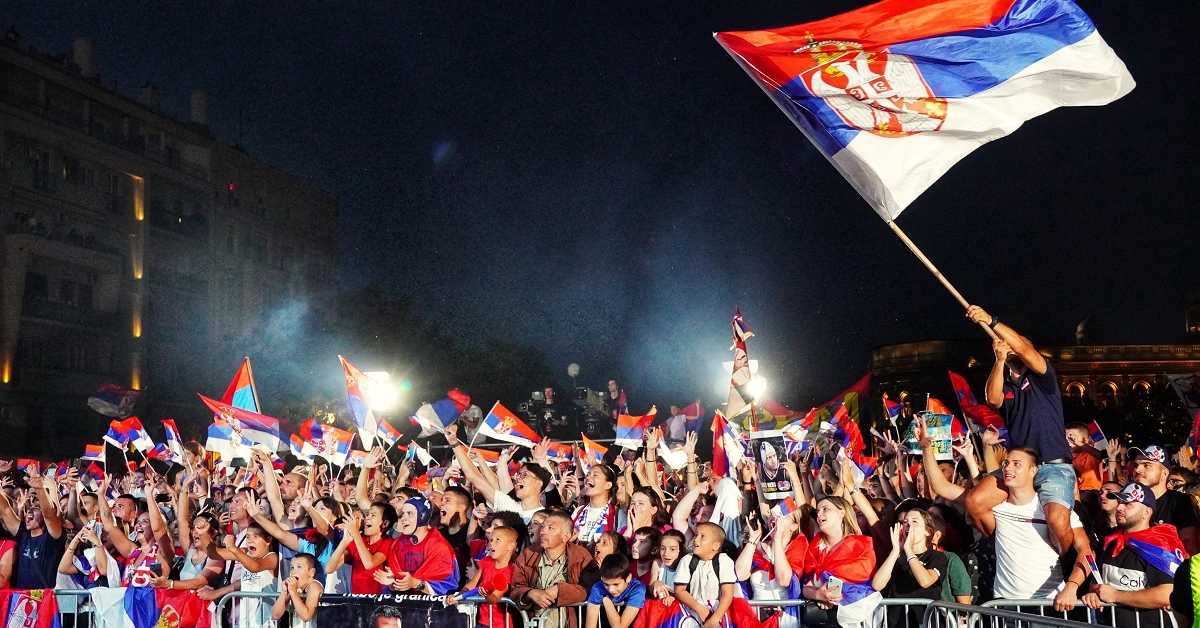 „Kapiten košarkaške selekcije Srbije Bogdan Bogdanović obratio se navijačima sa balkona i zahvalio im što su ih podržavali tokom celog turnira, ne samo njih nego i ostale srpske sportiste.