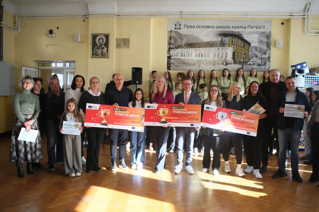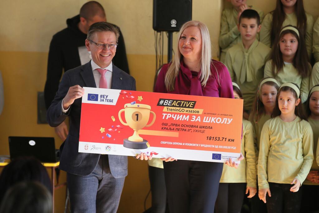 Nagradu za prvo mesto OŠ „Prva osnovna škola kralja Petra II“ iz Užica dodelio je predstavnik Delegacije EU u Srbiji, Ričard Maša.