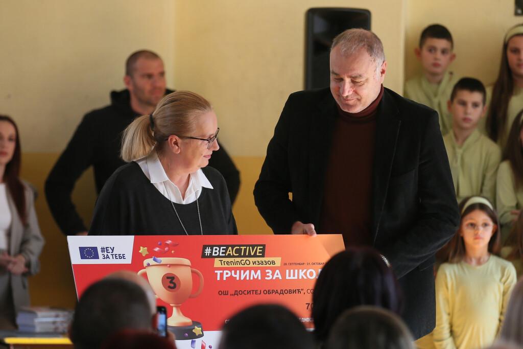 Koordinator za promociju olimpijskih vrednosti Olimpijskog komiteta Srbije, Mirjana Ivković, dodelila je nagradu drugoplasiranoj OŠ „Vožd Karađorđe“ iz Aleksinca.