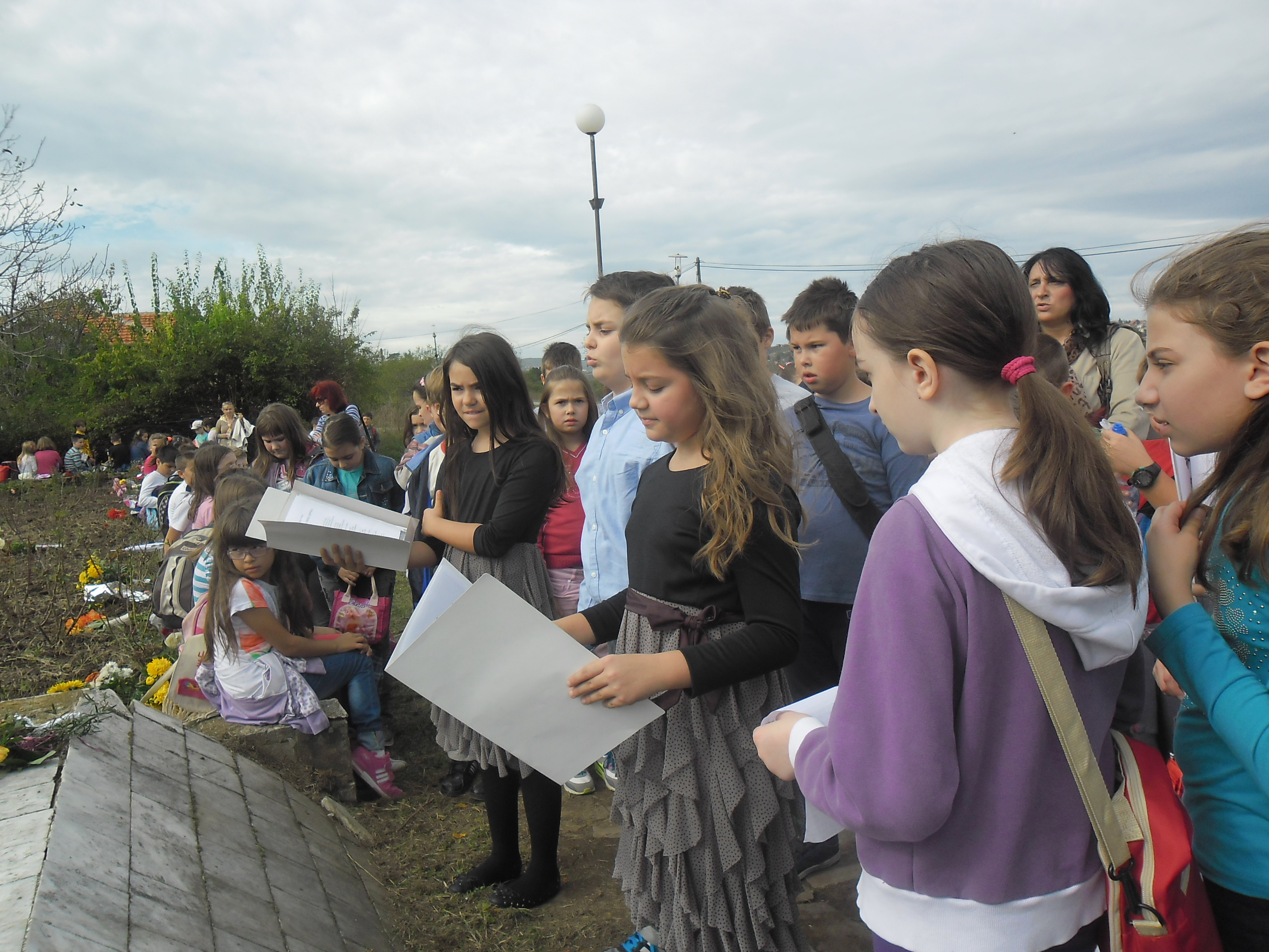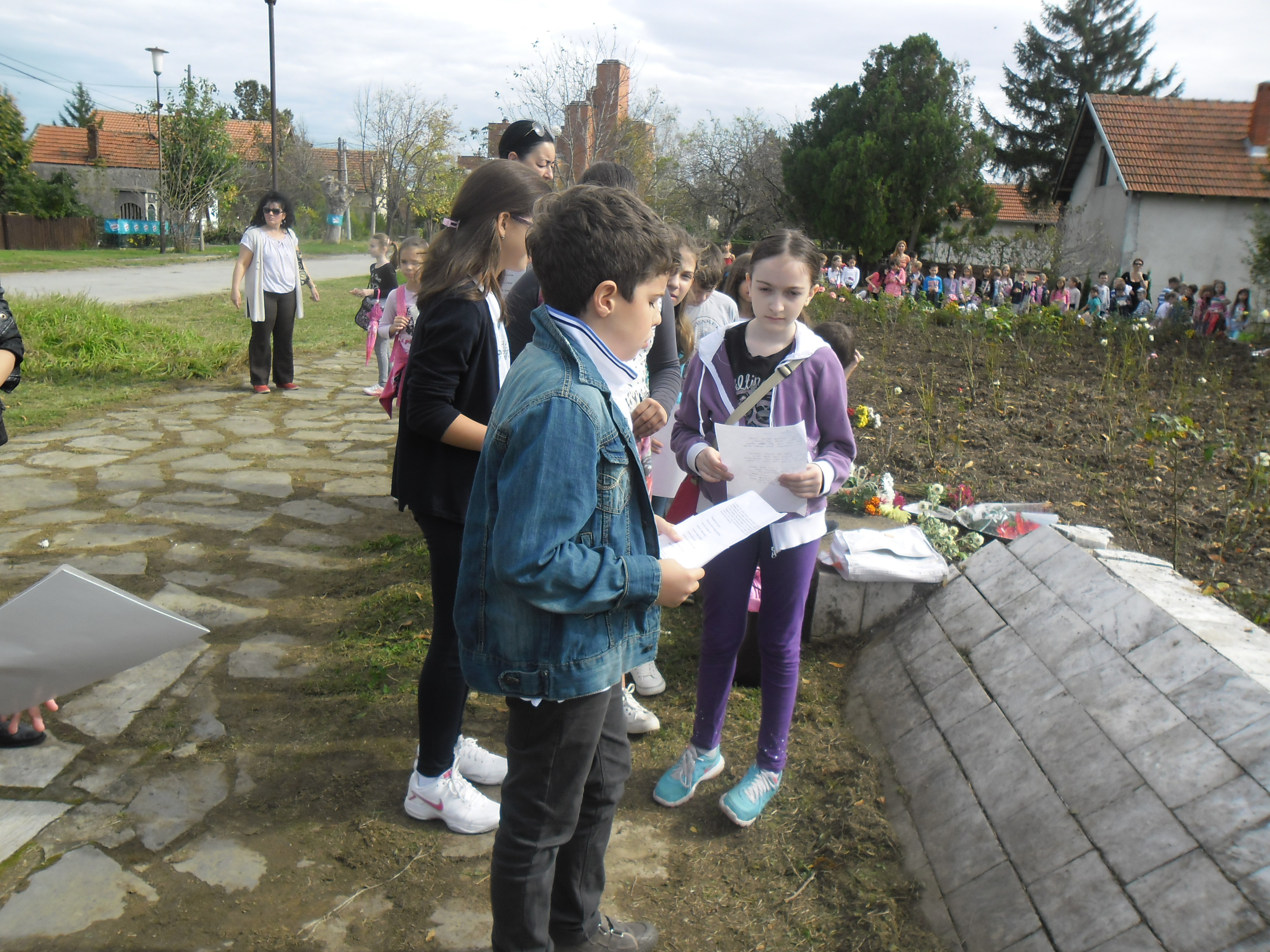 Učenici od prvog do četvrtog razreda Osnovne škole „21.oktobar“ iz Kragujevca su zajedno sa svojim učiteljicama, kao i svake godine, posetili humku streljane grupe ljudi davne 1941.godine. Učenici su nosili po buket cveća ostavljajući ga u znak poštovanja na pale žrtve svojih predaka.