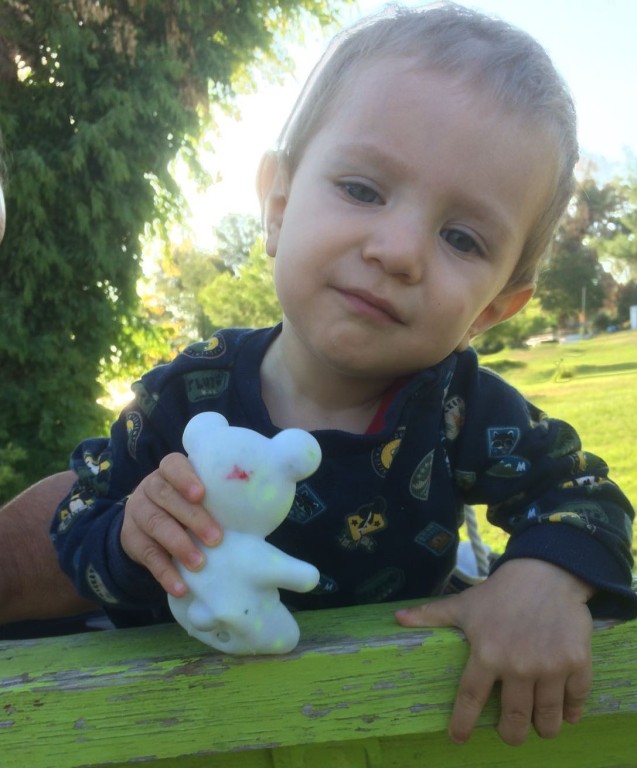 „Bila jedna složna porodica slonića. Mama slonica je često pričala sa svojim sinčićem: „Sloniću Toniću dragi, ako želiš da budeš veliki i snažan kao tata, moraš dobro jesti“. Mama je stavila tanjirić sa ručkom na sto. Slonić Tonić je slušao svoju mamu, uzeo svoju stoličicu, seo za sto i sve pojeo. Onda su pošli da šetaju, šetaju, šetaju.“