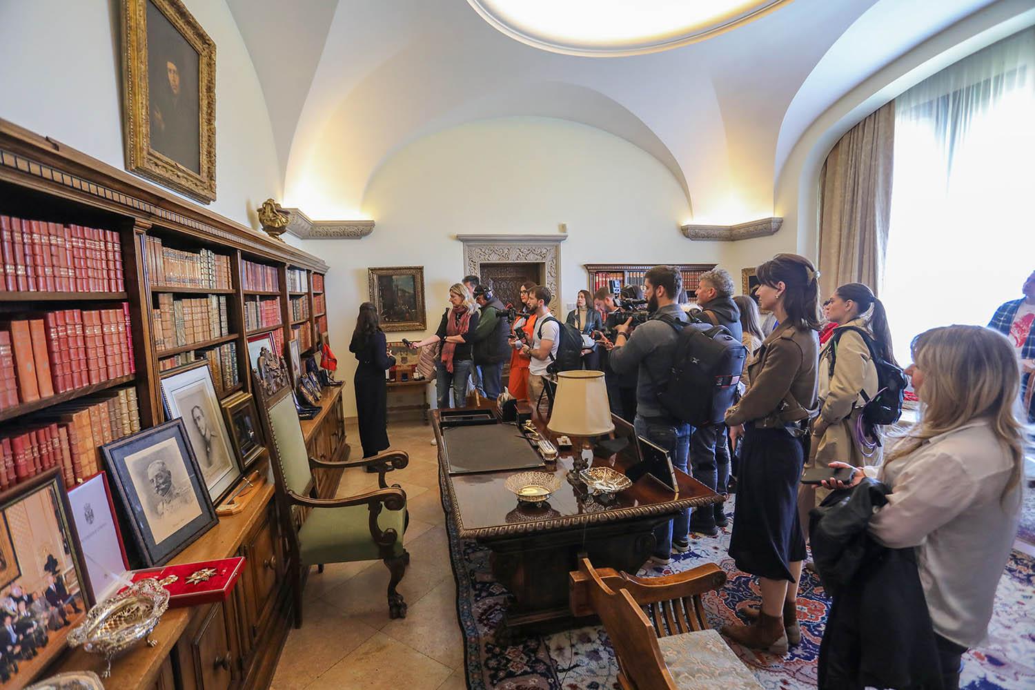 Beograd, 13. maj 2025. – Dvorski kompleks na Dedinju je od danas ponovo otvoren za turističke obilaske. Prvi posetioci u sezoni za 2025. godinu su kao i uvek bili predstavnici medija, koji su u pratnji profesionalnih turističkih vodiča Kraljevskog dvora imali priliku da se upoznaju sa zanimljivom istorijom i bogatom tradicijom ovog zdanja, jednog od najlepših ukrasa srpske prestonice.