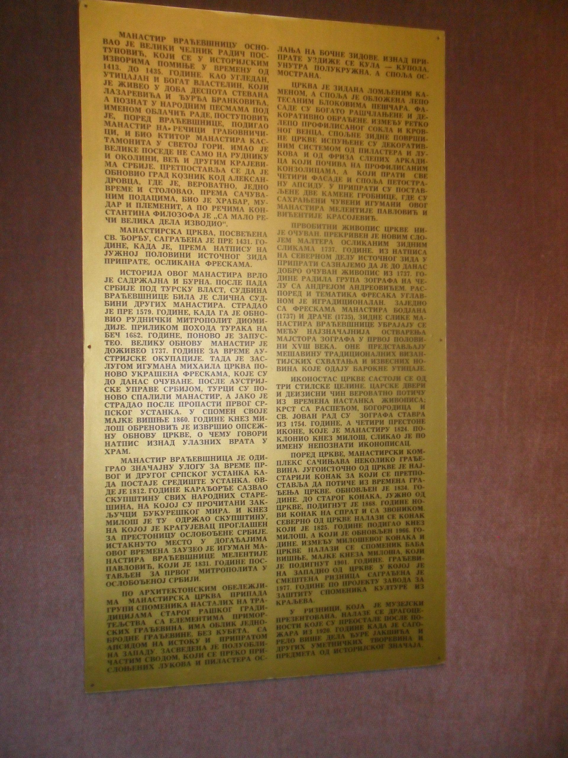 Manastir Vraćevšnica, sa crkvom sv. Đorđa nalazi se na južnim padinama planine Rudnik, na putu između Gornjeg Milanovca i Kragujevca. Sa svih strana je opkoljen šumom, tako da se ne primećuje dok mu se sasvim ne približite. Podigao ga je 1428/29. godine veliki čelnik Radič Postupović.