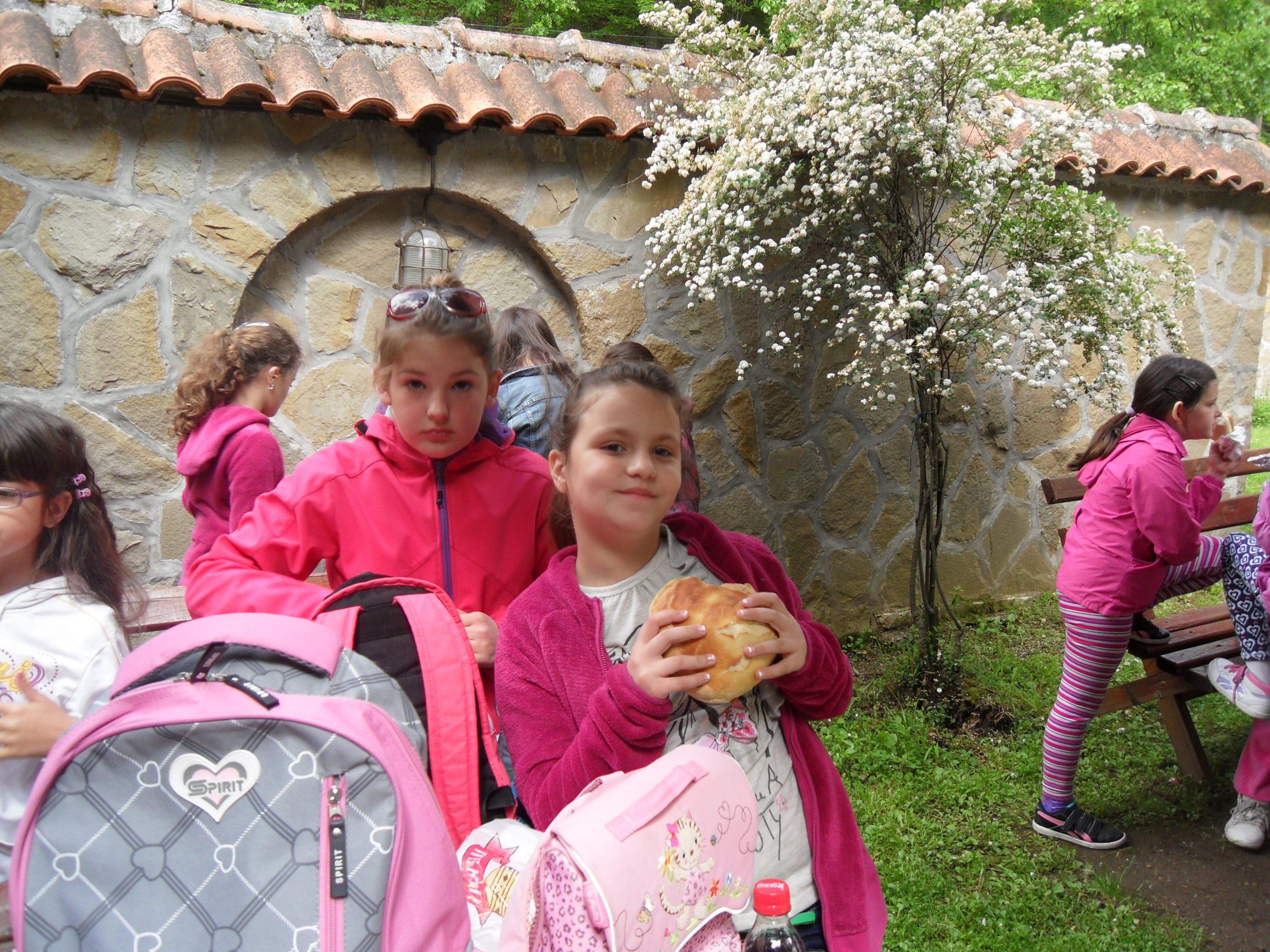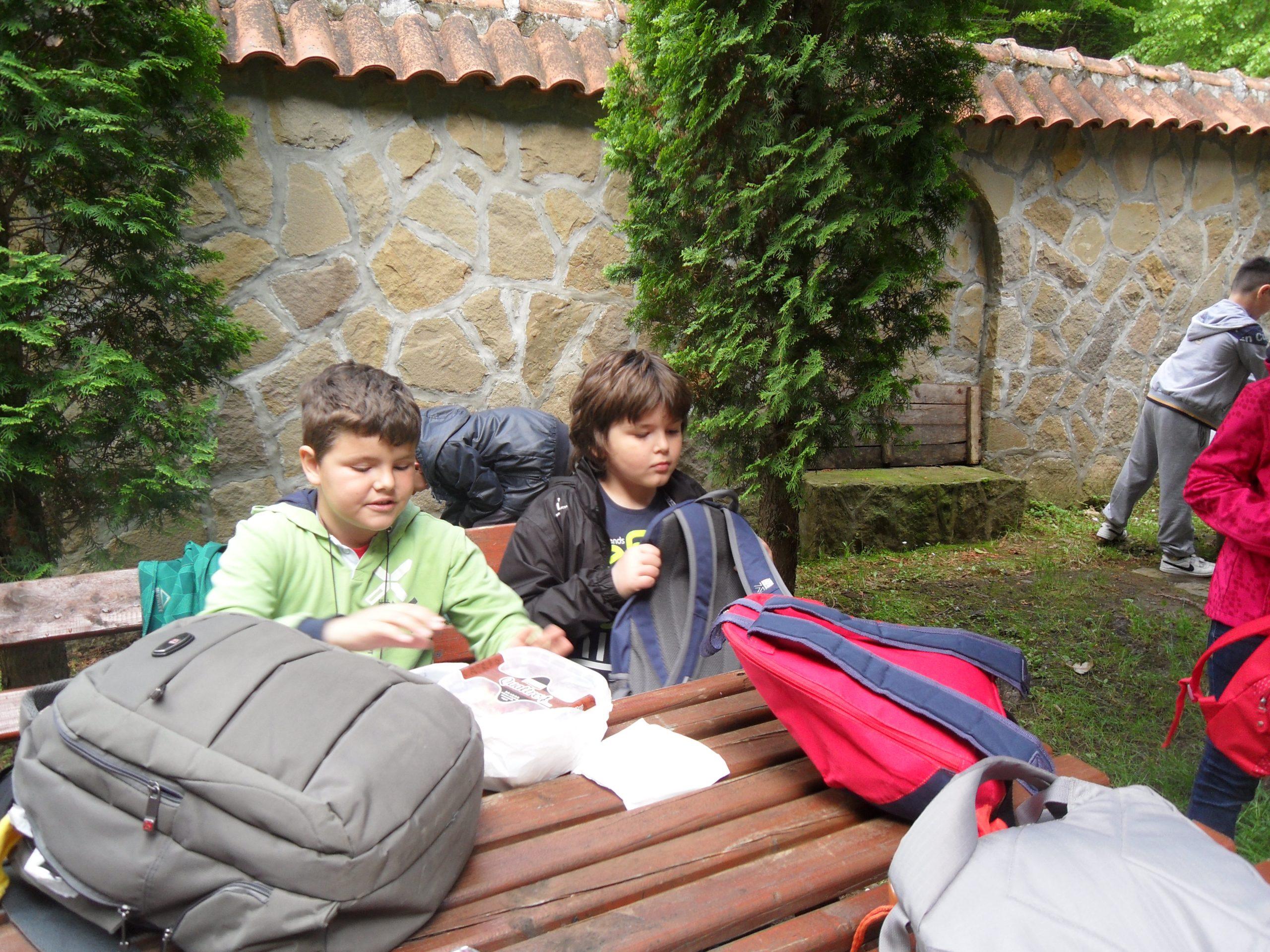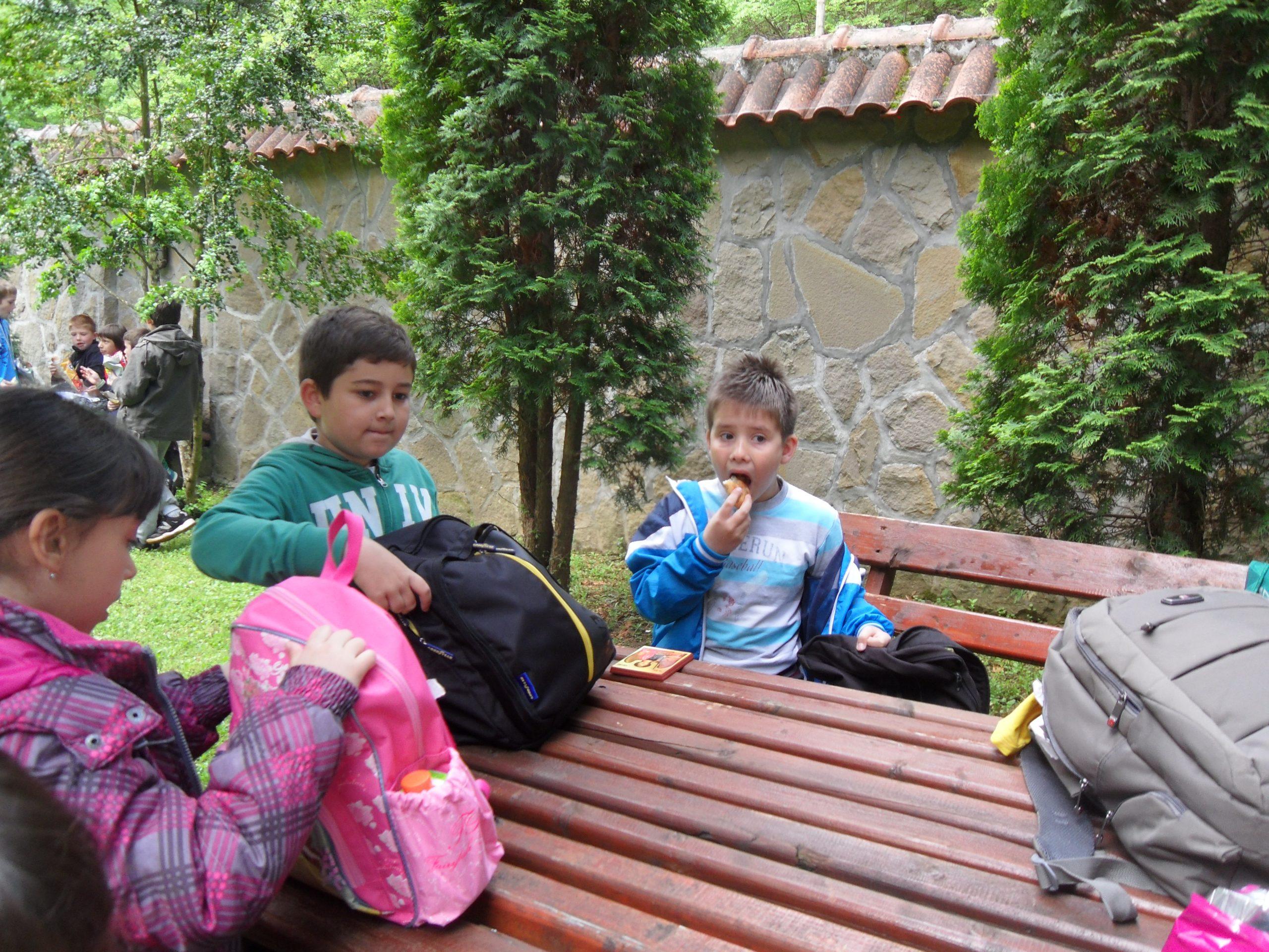 Pošto smo bili mnogo gladni, ispred manastira Vraćevšnica smo doručkovali i uživali u lepom vremenu i ambijentu.