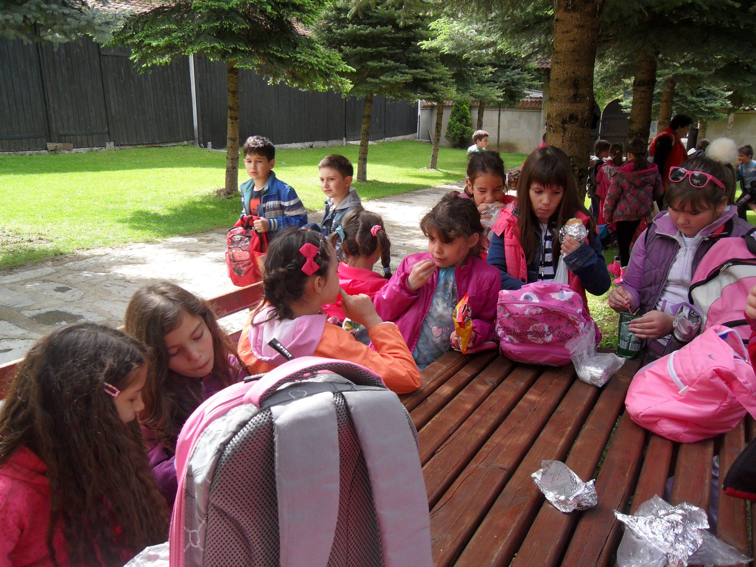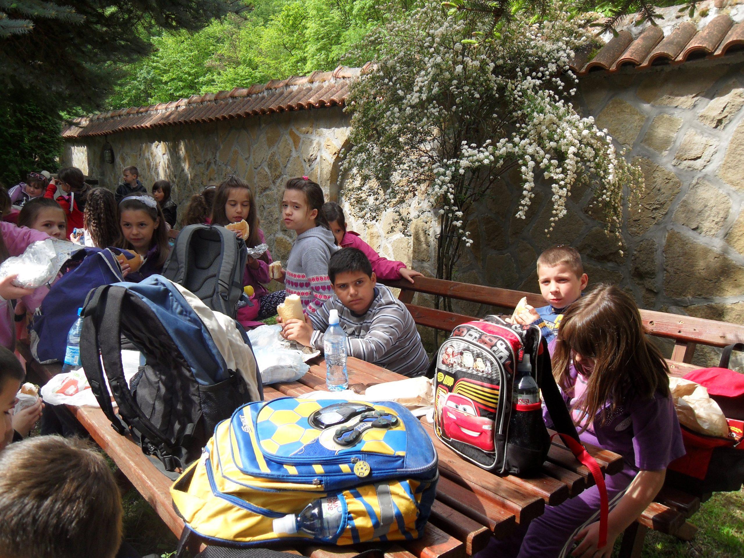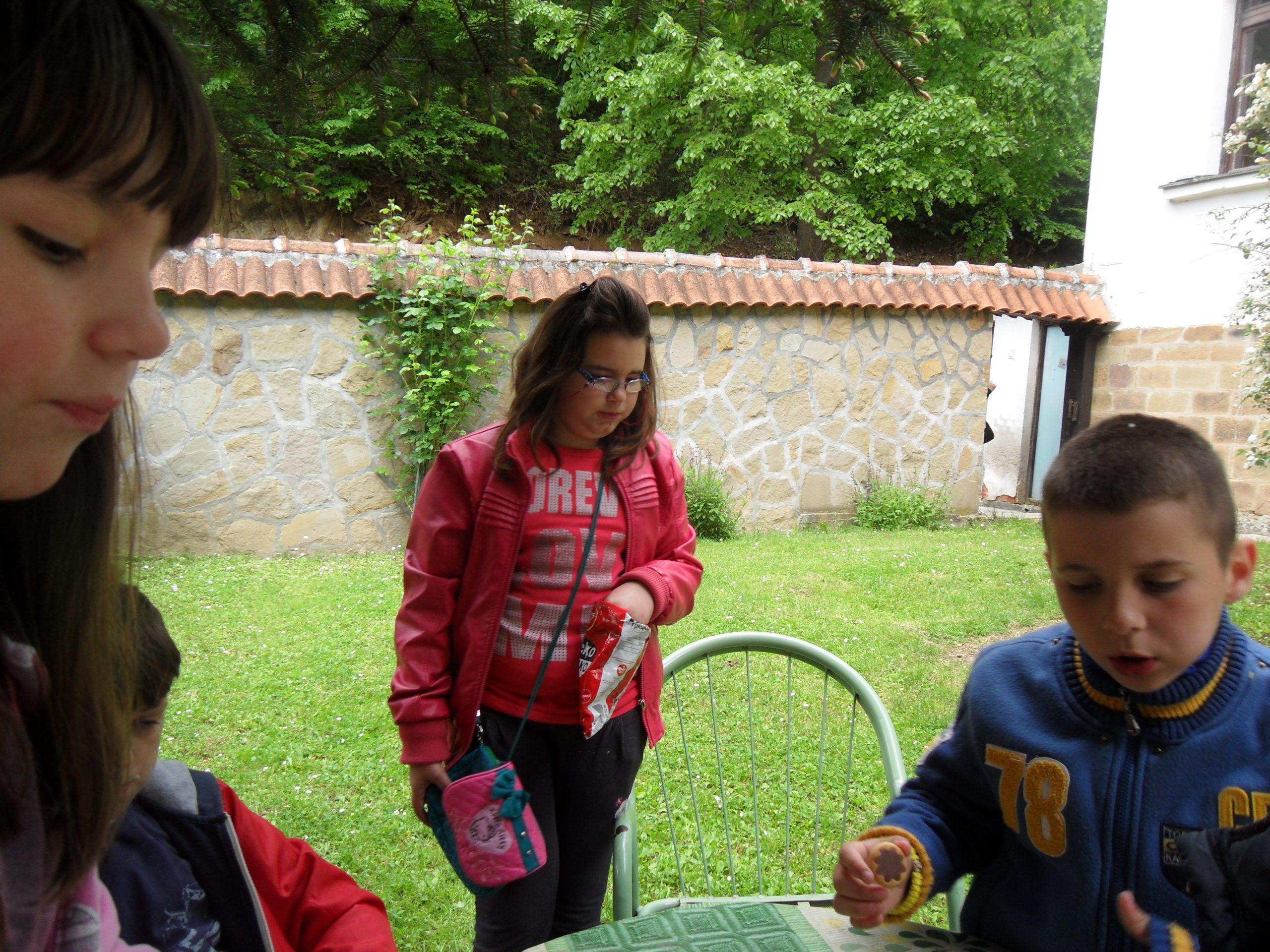 Pošto smo bili mnogo gladni, ispred manastira Vraćevšnica smo doručkovali i uživali u lepom vremenu i ambijentu.