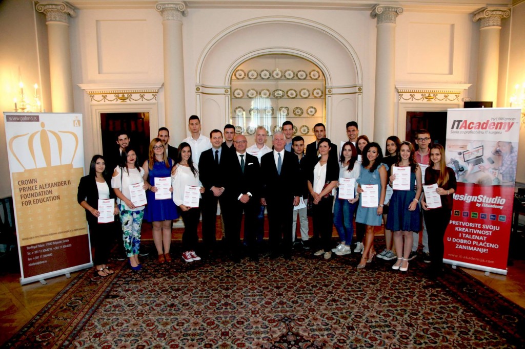 Beograd, 6. septembar 2017 – Njihova Kraljevska Visočanstva Prestolonaslenik Aleksandar i Princeza Katarina i gospodin Valentin Kuleto, predsednik kompanije LINK Group svečano su uručili stipendije za obrazovanje u oblasti informacionih tehnologija đacima generacija iz Srbije i Republike Srpske.
