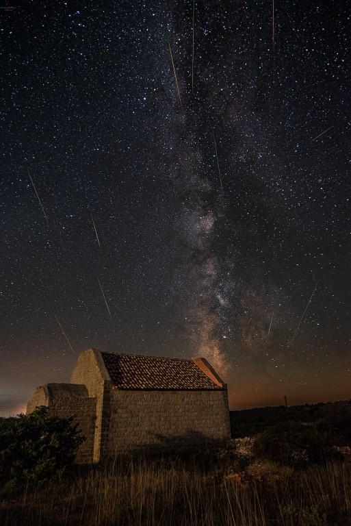 Kiša meteora perzeida ulovljena u noći sa 12. na 13. 8. 2023., 5 sati fotkanja i ispucanih 977 fotki ….(kompozicija 11 fotki)