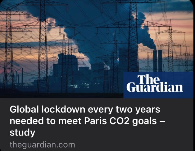 Britanski list „Gardian“ je slučajno podgrejao sumnje velikog broja teoretičara zavere člankom u kojem se sugeriše da je globalno zaključavanje (lokdaun) svake dve godine potrebno da bi se ispunili ciljevi Pariskog klimatskog sporazuma. Naslov članka je brzo promenjen, ali je izazvao burne reakcije.