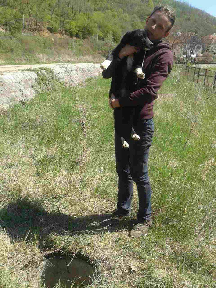 Sa svojom prijateljicom Dragom Zarev, koja zajedno sa njim priskače u pomoć, otišli su u Vranjsku banju, pronašli šahtu duboku dva metra, pored samog puta i reke u blizini. Pas je bio preplašen, iznemogao, mahao je repićem jer je u njima video spas i novu nadu za život.