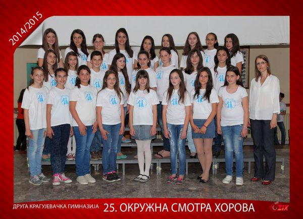 Такмичење је одржано 15. маја 2015. год,у Крагујевцу у холу Друге крагујевачке гимназије.Као једини из категорије малих школа,појавила се школа из Топонице.По први пут у историји школа се представила на овај начин.И у јакој конкуренцији са великим градским школама из Крагујевца и Јагодине, хор из Топонице под диригентском палицом Ане Зорић освојио је III награду са 78. поена,што је за први пут више него довољно.