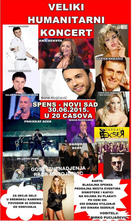 Udruženje građana „Budimo bolji ljudi“ Novi Sad, svojim aktivnostima je pre svega, usmereno na humanitarni rad sa ciljem pružanja pomoći deci. U ovom slučaju, želimo da povodom 40 godina od osnivanja Dečijeg sela u Sremskoj Kamenici, održavanjem humanitarnog koncerta u hali Spens u Novom Sadu 30. juna ove godine, prikupimo sredstva kako bi štićenicima – deci bez roditeljskog staranja, poboljšali kvalitet života i učenja. Takođe, želja nam je da održavanjem ovog koncerta pokrenemo sve relevantne institucije i preduzeća, kako bi mladi ljudi, stasali u ovoj ustanovi, imali kvalitetniju budućnost. Dečje selo Sremska Kamenica nastalo je u velikoj porodici SOS Dečjih sela. Otvoreno je 1975. godine kao stoto u svetu i prvo u Istočnoj Evropi. Misija koju se ova ustanova trudi da ostvari je da štićenike Dečijeg sela nauči pravim vrednostima i osposobi ih za dalji život. Da bi napori ove ustanove dali rezultate, neophodna je konstantna pomoć dobrih ljudi. Shodno želji i upornosti društva uopšte, organizuju se humanitarne akcije, u koje spadaju i aktivnosti oko organizovanja humanitarnih koncerata uz učešće eminentnih umetnika naše muzičke scene. Ovakvim i sličnim delovanjem obezbeđuje se unapređenje sveobuhvatnih uslova za život štićenika, kao i kvalitetniji pristup pripremama za samostalni život.