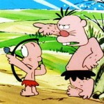 američki Basement Comics; nezabiolazno se ovde pojavljuje i poznati tandem Fredi – Barni, a potom imamo kadar iz svojevrsno satiričnog stripa Đirigiz (Girighiz – uporedimo npr. sa već predstavljenim „BC“ Džonija Harta, na narednoj slici) koji se prvi put pojavio u talijanskom časopisu Linus, 1965. Još jedna za nas manje poznata kreacija je Eli Up (Alley Oop), ovde sa svojom ljubljenom Ulom (Oola) na vremenskom izletu u XX vek – ovi likovi su plod mašte Vinsenta T. Hemlina (ž. 1900-1993., kreirano 1932.)