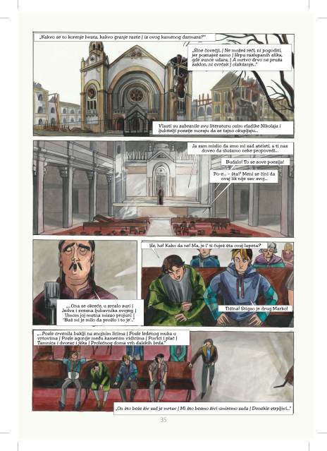 Hrana za znanjem je vidljiva i u citatima koje Đurić koristi duž stripa. Sa čitaocem govore Crnjanski, Šekspir, Eliot, Vasiljev i Marks, dok, čudna li čuda, izvorni Tito ćuti – bukvalno koliko i figurativno; jedini znak ex-yu vožda je nema slika u jednom kadru na strani 15 (verovatno slučajna igra okolnosti; stari vojnik gleda u petnaestogodišnju reinkarnaciju sebe na strani 15).