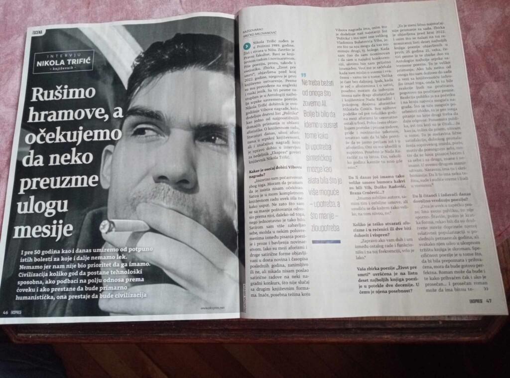Dragi prijatelji imao sam zadovoljstvo da dam intervju za magazin Ekspres. Dugujem veliku zahvalnost dragom kolegi Srećku Milovanoviću, na ukazanoj prilici. Pitanja su zaista bila retko inspirativna, ukratko – uživao sam. Ekspres se od petka nalazi na gotovo svim kioscima, pa ko voli, lako ga može naći. Ovde delim jedan manji deo intervjua, uz još jednu zahvalnost kolegi Srećku i redakciji Ekspresa na ukazanom poverenju.
