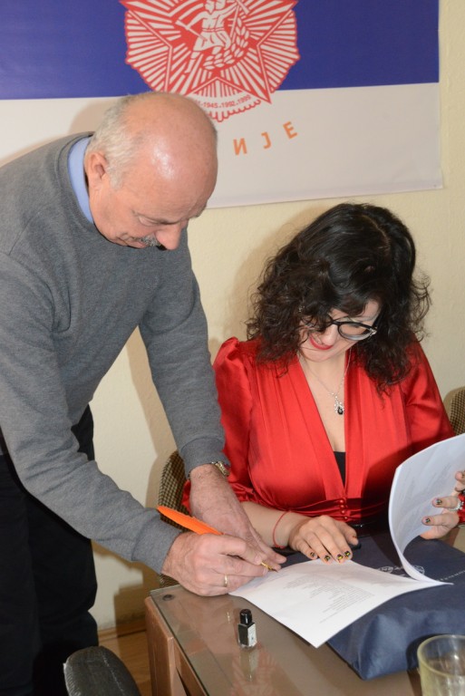 Poklonodavac i poklonoprimac potpisali su dokument Zlatnim perom iz Jerusalima poklonom predsedniku SUBNOR-a iz kolevke Hrišćanstva.