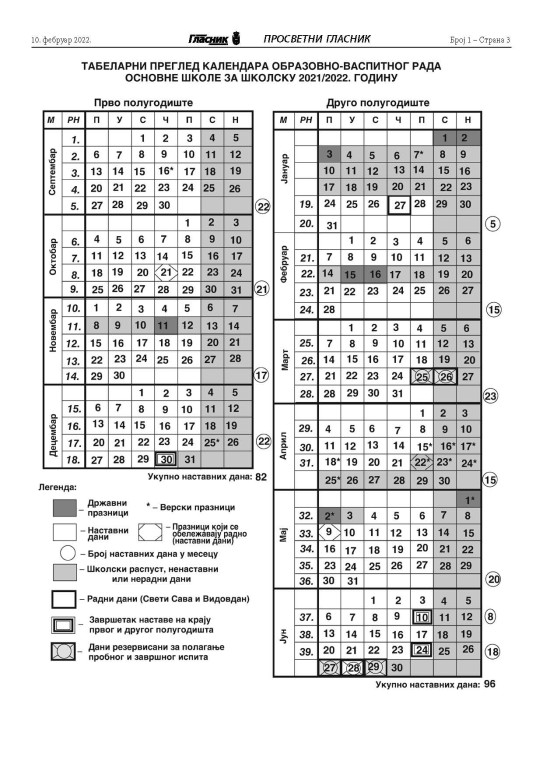feb 10, 2022 Izmenjen kalendar rada za osnovne i srednje škole u Srbiji /foto/ Izmenjen kalendar rada za osnovne i srednje škole u Srbiji ključne rečikalendar rada za osnovne školekalendar rada za srednje škole FacebookTwitterEmailViberReddItWhatsAppTelegramPrintPinterestTumblrLinkedinMixVKDiggLINENaver Facebook Prethodni tekstPokrenuta peticija: Učenici brane nastavnika koji je suspendovan zbog komentara „Srpčići moji“Sledeći tekstVaspitači za ponedeljak najavili protest ispred Ministarstva prosvete Zoran TodorovićOsnivač „Pokazivača“. Tvorac novakovanja. Čovek koji od života želi sve ili ništa, a trenutno živi negde između. PROČITAJTE! Magazin Kraljevska porodica Karađorđević proslavila krsnu slavu Zoran Todorović - dec 13, 2025 Knjige Lončar među najboljim pjesnicima planete: Objavljeni rezultati za 2025. Zoran Todorović - dec 13, 2025 Otvorena vrata Hiljade Božićnih paketa Lajflajn Čikaga za decu bez roditeljskog staranja stigli u Kraljevski dvor Zoran Todorović - dec 11, 2025 Mesečina Zoran Todorović: Kao voda bašti Zoran Todorović - avg 21, 2017 Zanimljivosti Tvit dana Kristina Raković - nov 17, 2014 Mesečina Stefan Simić – Tri tačke… (Govori: Mile Vasiljević) Milinko Mile Vasiljević - maj 20, 2019 Magazin Razglednica: Tasos Jovanka Ignjatović - jul 6, 2014 Mesečina Kad shvatiš da voliš, prihvataš da budeš žrtva radi ljubavi Marina Milosavljević - avg 22, 2015 Fotografija Fotografija dana Goran Protić - avg 11, 2018 Mesečina Pesničke minijature Nevene Milosavljević Nevena (Vukadinović) Milosavljević - mar 15, 2021 Satatatira Karikatura dana Slaviša Ševrt - mar 9, 2018 Priključenija Basketaši u „grupi smrti“ Uroš Selenić - sep 25, 2016 Atelje Atelje: „Portret brata i sestre“- drvene bojice; 30x42cm Snežana Kujundžić - jan 15, 2016 Otvorena vrata Level Up – Podigni nivo svojih veština Zoran Todorović - okt 15, 2018 Atelje Četkicom ostvaruje snove Zoran Todorović - feb 18, 2017