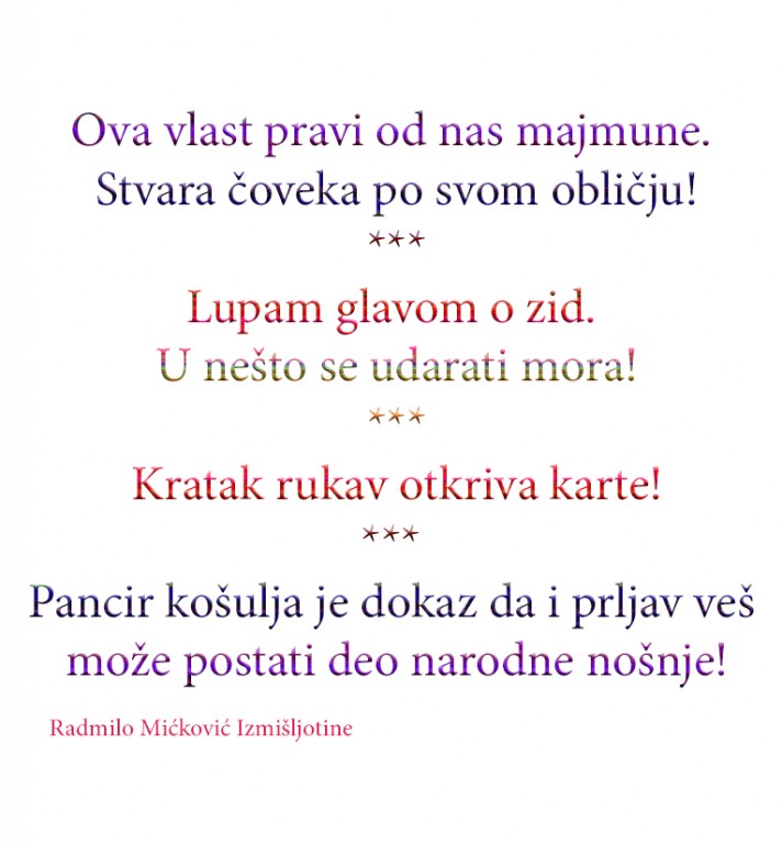 Kataklizma, epigrami; Sve će to narod otplatiti, aforizmi; Izlet u obližnji raj, roman; Srbi čuvaju mrtvaca, poema; Ovde je nekad bio svet, poezija; Ohole žrtve, pripovetke; Volim i ja vas, aforizmi; Verbalne vrfeske 1, 2, eseji; Posle potopa, aforizmi; Nepodobna knjiga, aforizmi; Nuda veritas, odabrani aforizmi; Zvezdočatac i pesme, poezija; Ispovest trovačasmehom (Dnevnik srpskih poniženja), aforizmi; Užasno dosadna knjiga (Coito ergo sum) odabrani erotski aforizmi; Verbalne freske 1, 2, eseji – drugo izdanje; Literarni uzlet mamlaza Baljoševića (Skica za portret jednog naroda), aforizmi; Šumadijski soneti, pesme. Uvršten je u više desetina zbornika, antologija i enciklopedija iz oblasti poezije i aforizama. Prevođen na više stranih jezika.