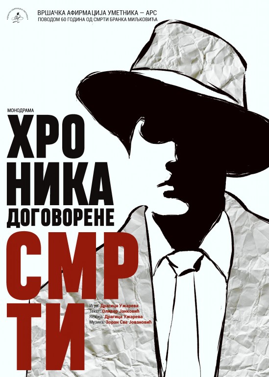Pod pokroviteljstvom VRŠAČKE AFIRMACIJE UMETNIKA – ARS, kao prodecenta, a povodom 60 godina od smrti Branka Miljkovića, u Kulturnom Centru Čukarica, 08.10.2020. izvedena je premijera monodrame HRONIKA DOGOVORENE SMRTI.