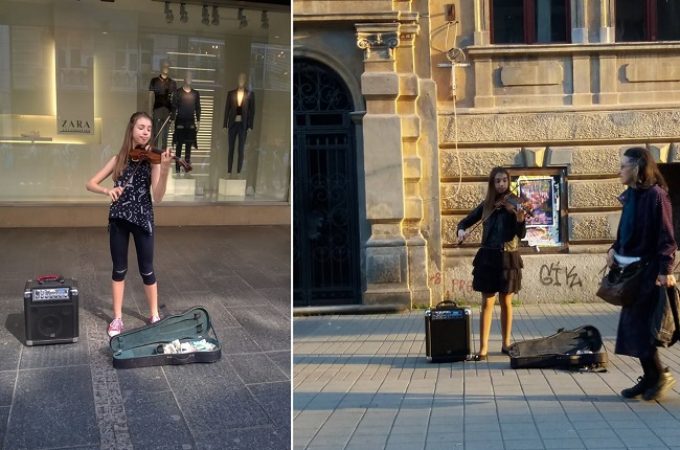 Mnogi Beograđani svaki dan prolaze pored simpatične devojčice, a ni ne slute da je reč o dvostrukoj prvakinji Srbije u violini, koja i po kiši već četiri godine svira u Knez Mihailovoj ulici.