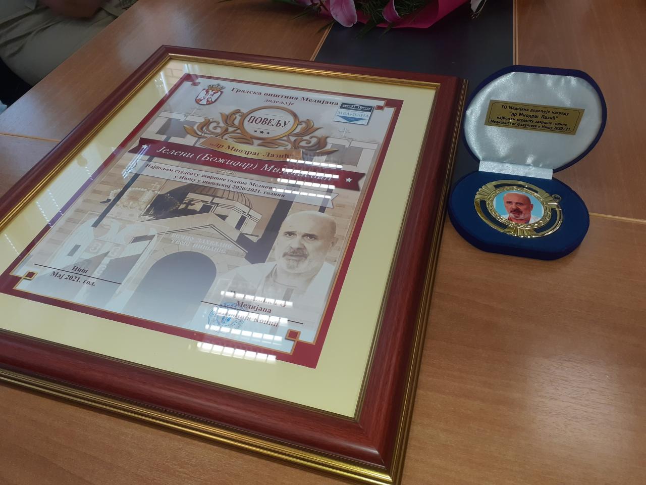 Podsetimo, predlog da nagrada za najboljeg studenta Medicinskog fakulteta u Nišu ponese ime dr Miodraga Lazića, koji je preminuo pre više od godinu dana, usvojen je u aprilu ove godine, nakon što su njegovo ime poneli ulica kraj Univerzitetskog kliničkog centra i Urgentni centar u Nišu.