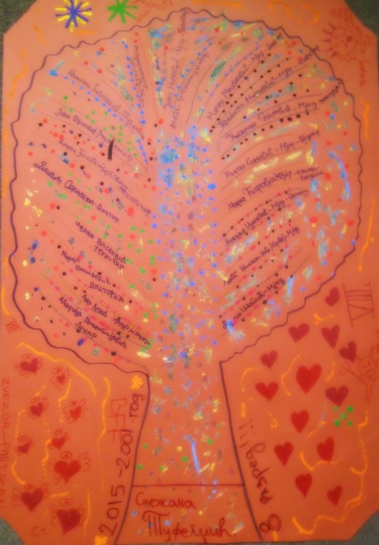 Učenici su imali zadatak da izkreiraju „Odeljenjsko drvo“, koje treba da bude sinonim lične karte razreda i razrednog starešine i da grupu integriše i determiniše kao celinu. Ostavlja se mogućnost svakodnevnog transformisanja zadatka, koji ima sposobnost da postane dinamička celina jednog odeljenja i da se razvija i raste sa tom grupom. Grupa se prepoznaje po nekim karakteristikama: