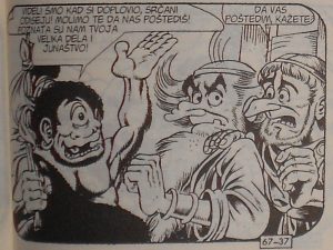 Do kraja magnusovskog ciklusa crtanja, imali smo prilike da „upoznamo“ na jedan novi način još i Julija Cezara, admirala Nelsona, Karla Velikog i Bijesnog Orlanda, Homera i Odiseja, Ikara i Dedala (gle, bez svedočenja samog Broja Jedan!) Vergilija, zatim, sa malo većim vrem. skokom Napoleona i dr. Kada je crtanje preuzeo Pifarerio (nedavno smo naučili i koja je to faza) ovaj manir se već beše proredio, pa protekne i niz epizoda bez ovakvog ugođaja; ipak, i tu smo čuli štošta o borbama za prevlast prvobitne rimske države sa susednima (Horaciji i Kurijaciji), kasnije i priču o Neronu, i npr. o Kolumbu i Dejviju Kroketu.