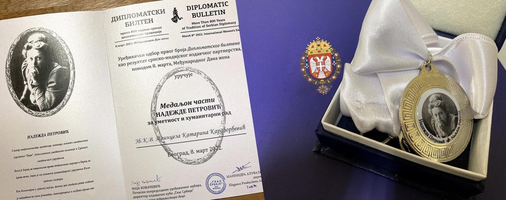 Beograd, 31. mart 2022. – Uređivački odbor „Diplomatskog biltena“, koji je dodelio NJ.К.V. Princezi Кatarini Medalju časti „Nadežda Petrović” za zasluge u oblasti humanitarnog rada povodom Međunarodnog dana žena, održao je juče gala veče i promociju prvog izdanja ovog časopisa u hotelu „Кraun Plaza“ u Beogradu.