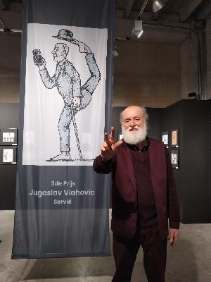 Poznati srpski ilustrator i karikaturista Jugoslav Vlahović osvojio je treću nagradu na prestižnom međunarodnom bijenalu karikature u Kruzhutemu u Belgiji, u organizaciji Evropskog centra za karikaturu.