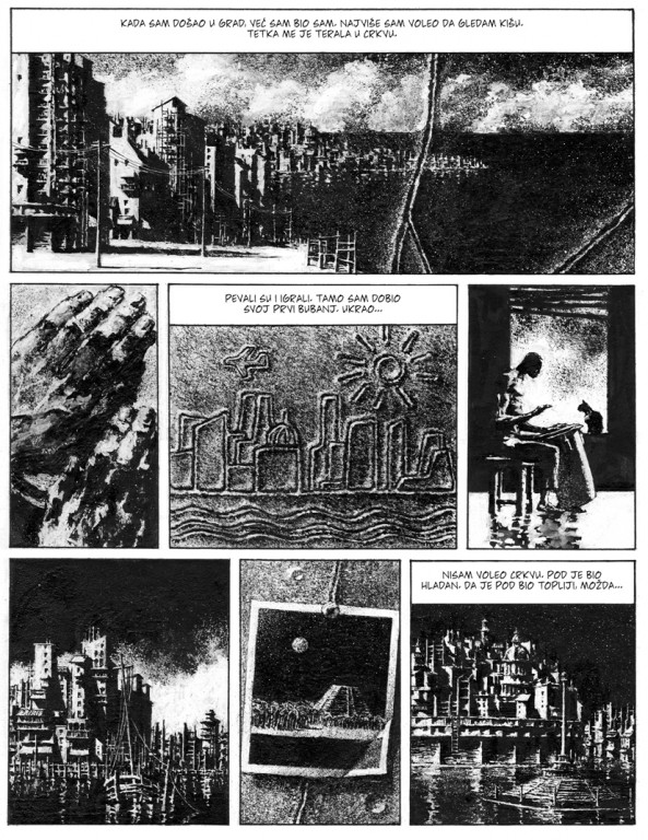 Uopšteno govoreći, sve četiri priČe imaju repetitivne i jako efektivne motive, a najčešći su pesak i kamen sa crtežima. Često ti crteži odaju više u stripu nego sama radnja, te će budni pratioci da već pretpostave kada se budi sunce, ili gde i na koji način vodi bubanj. Vide se i unutarnje emocije likova, poput Reksovog slomljenog srca ili Sofijinog afiniteta prema gradu gde deluje. Drugi veliki plus, možda i najveći motiv sam po sebi, je realizam Žeželjevih crteža. Gradovi koji su očigledno naslikani deluju kao fotografije, gde je i najmanji prozor izdetaljisan. Ljudi su takođe maltene fotoreprodukovani. Kao i životinje. Kao i predmeti izbliza. Neretko se onda dobije utisak da se ne čita strip, već kakva ilustrovana autobiografija jednog društva. Ili monografija nekog okruženja dovoljno urbanog da može biti bilo koje na planeti.