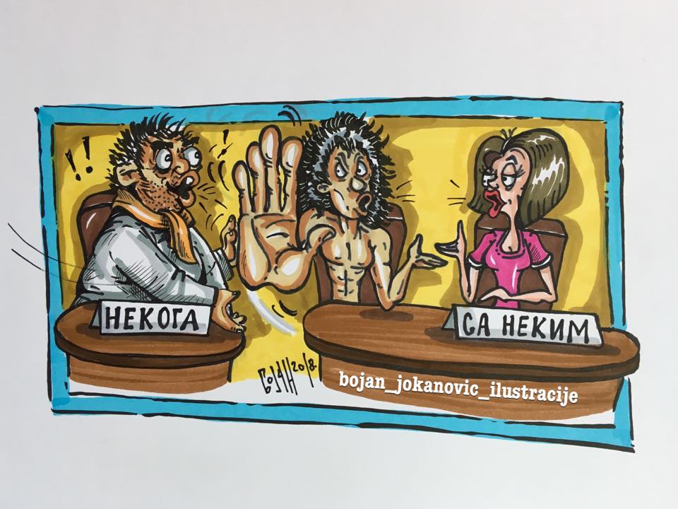 Karikatura: Bojan Jokanović feb 21, 2018 Karikatura dana Karikatura: Bojan Jokanović ključne rečiKarikatura danaKarikature Bojana Jokanovića FacebookTwitterEmailViberReddItWhatsAppTelegramPrintPinterestTumblrLinkedinMixVKDiggLINENaver Facebook Prethodni tekstRaspisan konkurs za studentske radove o Evropskoj unijiSledeći tekstStipendiranje studija u Rusiji za školsku 2018/2019. Bojan JokanovićRođen 2. maja 1985. godine u Tuzli, živi u Doboju. Diplomirani Teolog, radi kao vjeroučitelj. Bavi se crtanjem, sviranjem gitare…"satiričnim" temama iz svakodnevnog života, ne/kulture, obrazovanja, mentaliteta...Čovek pre svega. PROČITAJTE! Knjige Petar Pismestrović: Partija pokera – knjiga karikatura Petar Pismestrović - dec 4, 2025 Satatatira Karikatura dana Petar Pismestrović - avg 13, 2025 Satatatira Karikatura dana Petar Pismestrović - avg 13, 2025 Kultura POČEO ARSENAL: Pivo, Babe i Kelti… oterali kišu iz Kragujevca! Zoran Todorović - jun 26, 2015 Atelje Atelje: „Jovanka Orleanka“ (L. Sobieski)- olovka; 30x40cm Snežana Kujundžić - jun 26, 2015 Satatatira Dnevna doza aforizma Sandra Petković - avg 19, 2017 Priključenija Odbojka: Spartak ubedljiv u Inđiji Uroš Selenić - nov 22, 2015 Mesečina Peko Laličić: Ima li Mesec more? Peko Laličić - feb 27, 2018 Mesečina Mi smo ništa – Helena Himel Helena Himel - jul 5, 2017 Magazin Vrnjačka Banja raspisala tender za izradu idejnog plana gondole „Novak Đoković“ Zoran Todorović - avg 12, 2023 Satatatira Dnevna doza aforizma Jane Atanasov - nov 10, 2017 Fotografija Fotografija dana Sandro Puncet - dec 21, 2017 Mesečina Predrag Kisa Kisić: *** Predrag Kisa Kisić - jan 2, 2019 Priključenija Olimpijske igre četvrtak (18. avgust): Dani srpskog sporta Uroš Selenić - avg 19, 2016 Magazin Rudari u kopačkama: Put Remona Kope, Džeka Čarltona i Kruna Radiljevića od kopa do stadiona Zoran Todorović - dec 16, 2024