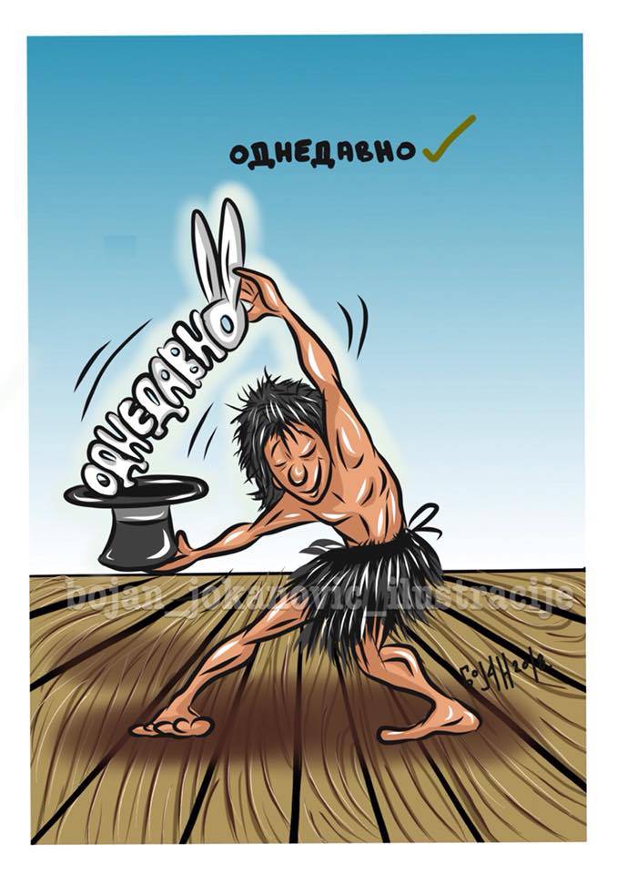 Karikatura: Bojan Jokanović avg 15, 2018 Karikatura dana Od nedavno ili odnedavno Piše se odnedavno. Prilog odnedavno koji znači otpre kratkog vremena, odskora, piše se spojeno. Karikatura: Bojan Jokanović ključne rečiKarikatura danaKarikature Bojana Jokanovića FacebookTwitterEmailViberReddItWhatsAppTelegramPrintPinterestTumblrLinkedinMixVKDiggLINENaver Facebook Prethodni tekstSisa palac i gricka usne? Šta stoji iza ovih detetovih navika?Sledeći tekstDnevna doza aforizma Bojan JokanovićRođen 2. maja 1985. godine u Tuzli, živi u Doboju. Diplomirani Teolog, radi kao vjeroučitelj. Bavi se crtanjem, sviranjem gitare…"satiričnim" temama iz svakodnevnog života, ne/kulture, obrazovanja, mentaliteta...Čovek pre svega. PROČITAJTE! Knjige Petar Pismestrović: Partija pokera – knjiga karikatura Petar Pismestrović - dec 4, 2025 Satatatira Karikatura dana Petar Pismestrović - avg 13, 2025 Satatatira Karikatura dana Petar Pismestrović - avg 13, 2025 Priključenija Rolan Garos: Nole bolji od Bedenea za plasman među 16 najboljih Zoran Todorović - maj 28, 2016 Film Anja Mit za 30 MINUTA – Od malih nogu sam znala da ću biti glumica 30 MINUTA sa Dejanom Jelačom - nov 21, 2019 Mesečina Sara Jekić: Nikada ti nisam rekla Sara Jekić - avg 26, 2016 Atelje Atelje Dobrosava Boba Živkovića Dobrosav Bob Živković - nov 27, 2018 Muzika Mi plešemo – Prljavo kazalište – solo cover & lesson Yesiloveguitar - maj 12, 2019 Mesečina Nerandža Kostić: Tuge Nerandža Kostić - feb 24, 2019 Zanimljivosti Dama sa puškom u ruci: Čuli ste za Milunku Savić, ali ona nije bila jedina SRPSKA HEROINA! Zoran Todorović - avg 27, 2017 Knjige 6. BFEK 2017: Beogradski festival evropske književnosti: najava i program Marko Radojičić - jun 18, 2017 Fotografija How To Create an Interesting Portrait From a Letters, Flowers, Symbols etc…| Photoshop tutorial Nemanja Sekulić - jan 23, 2017 Otvorena vrata Likovni rad dana: Slobodna tema Jovanka Ignjatović - mar 21, 2016 Otvorena vrata Ekskurzija: OŠ „21.oktobar“ Kragujevac – IV deo Jovanka Ignjatović - maj 19, 2014 Fotografija Fotografija dana: Beograd noću Zoran Todorović - dec 22, 2015